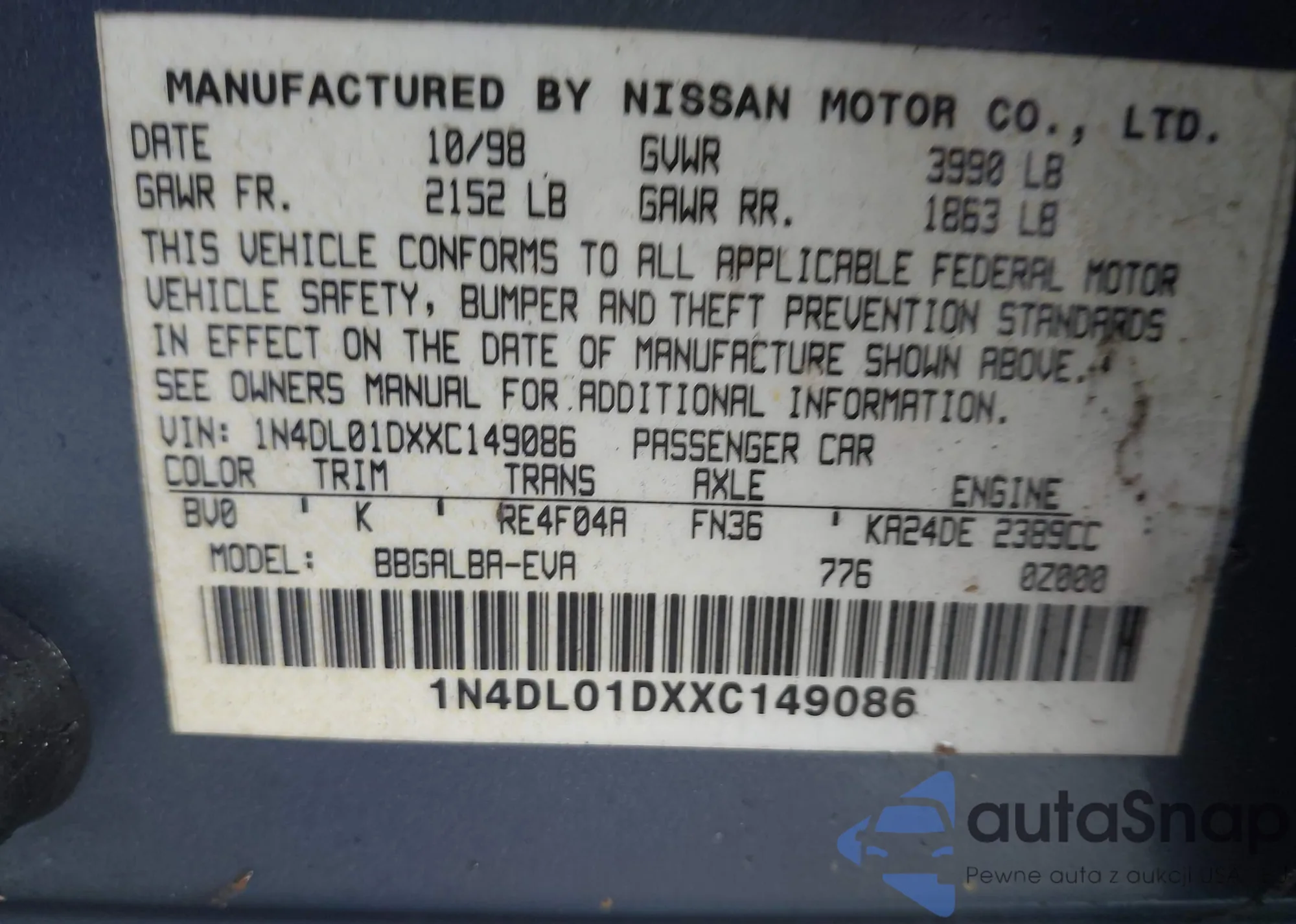 VIN: 1N4DL01DXXC149086