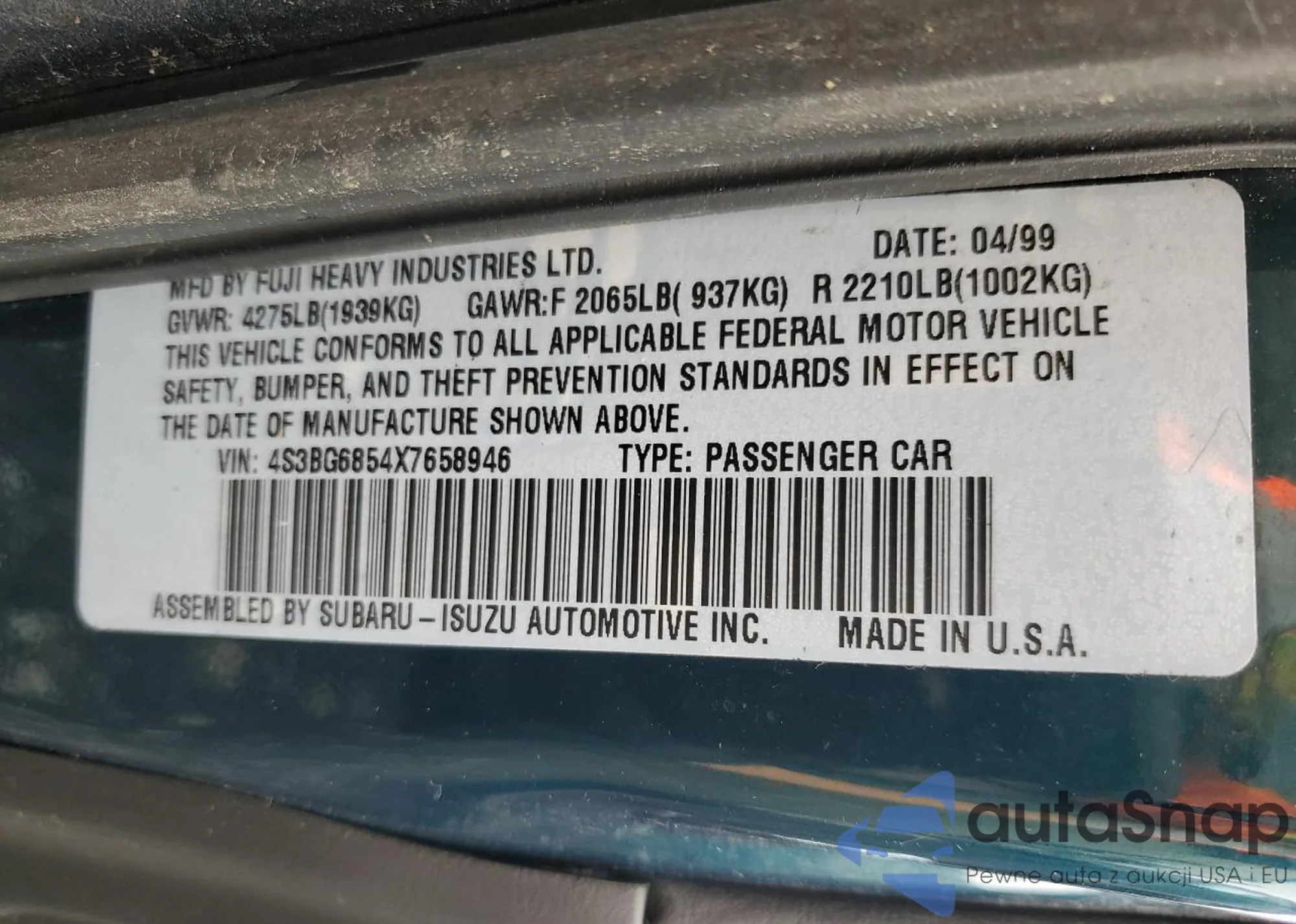 VIN: 4S3BG6854X7658946