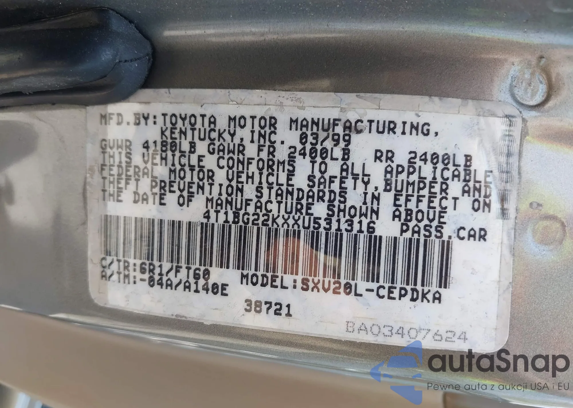 VIN: 4T1BG22KXXU531316