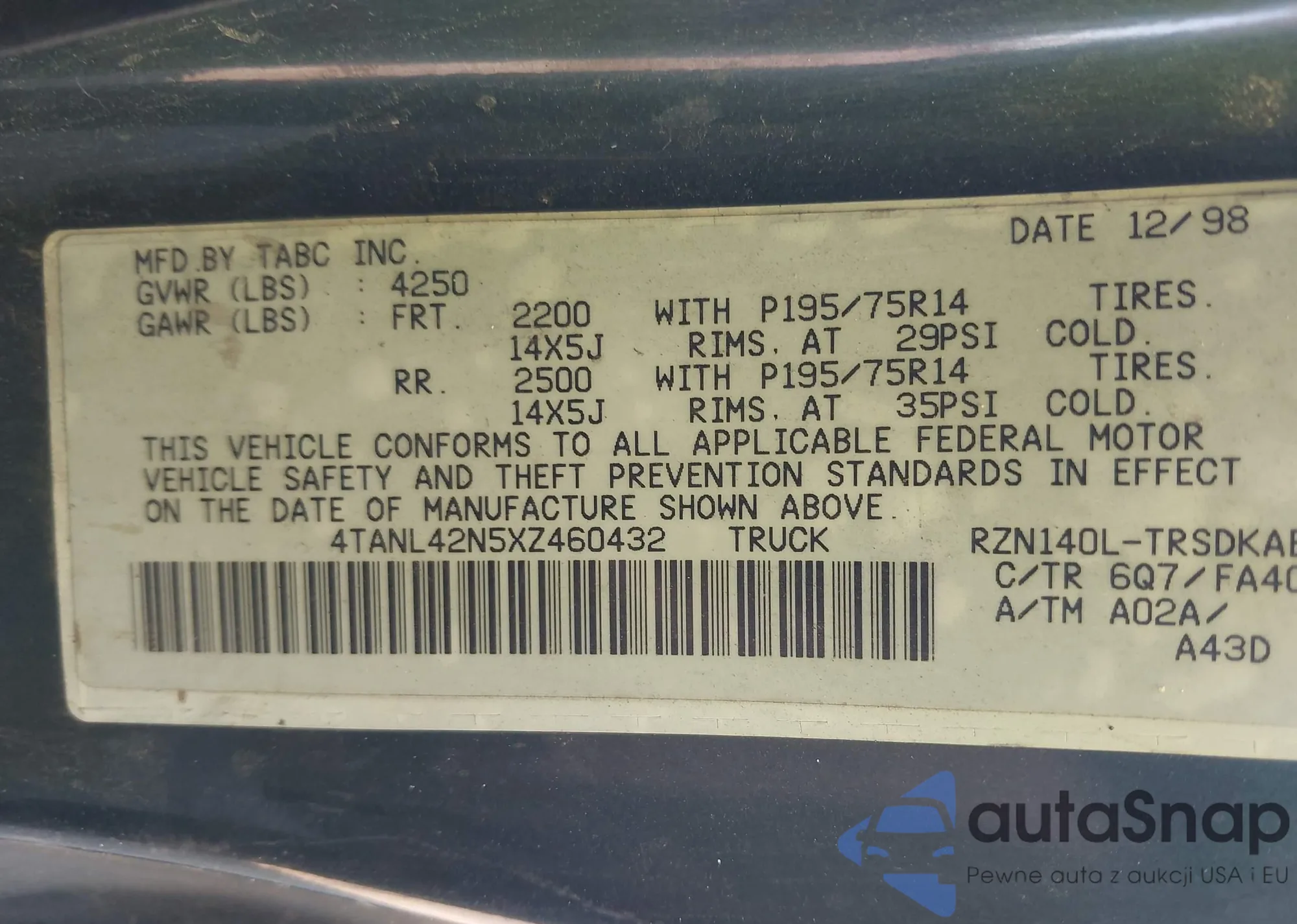 VIN: 4TANL42N5XZ460432