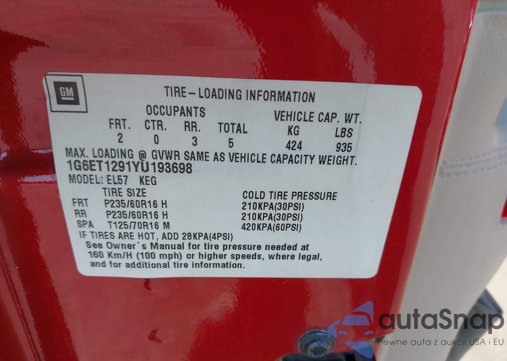 VIN: 1G6ET1291YU193698