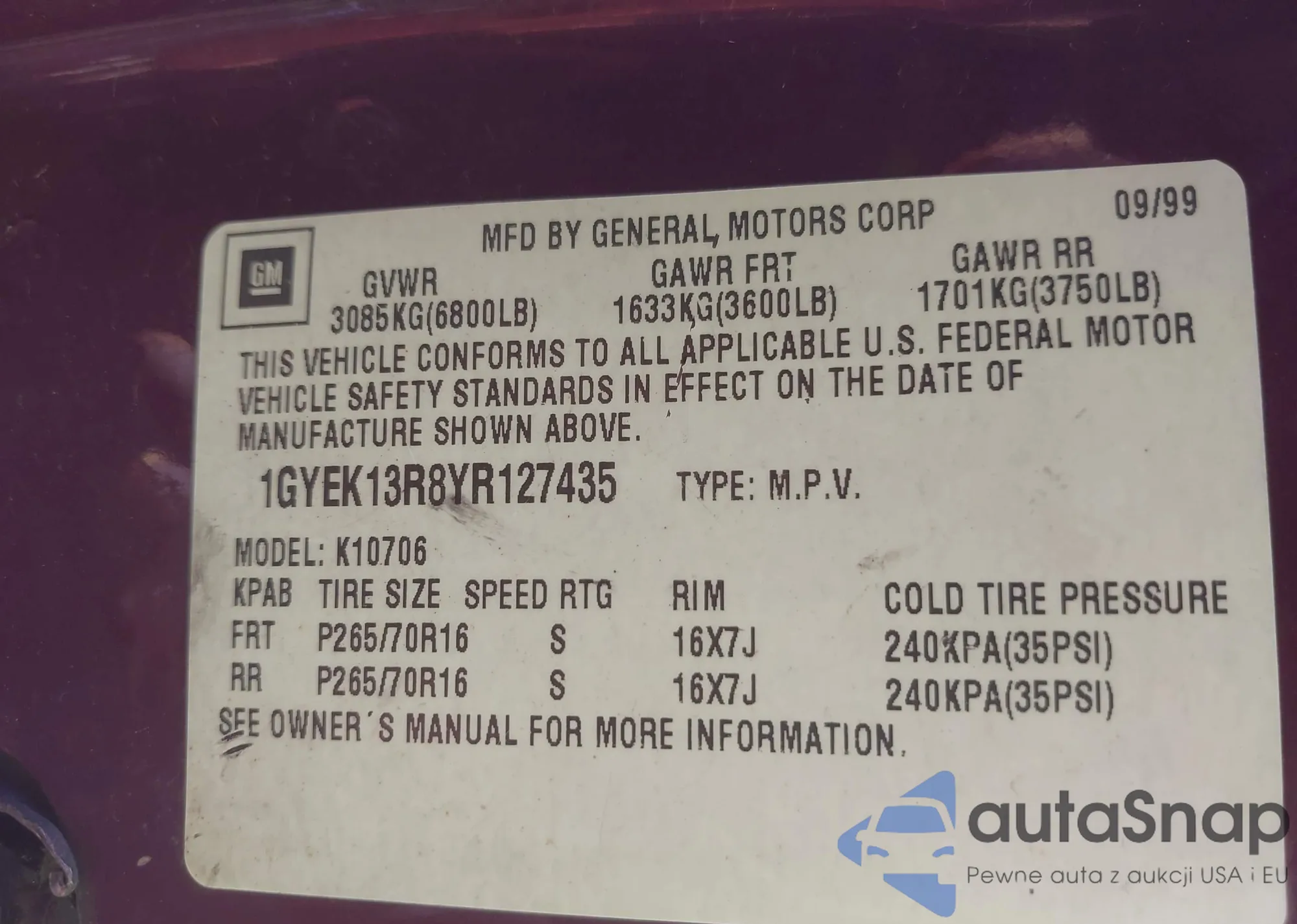 VIN: 1GYEK13R8YR127435