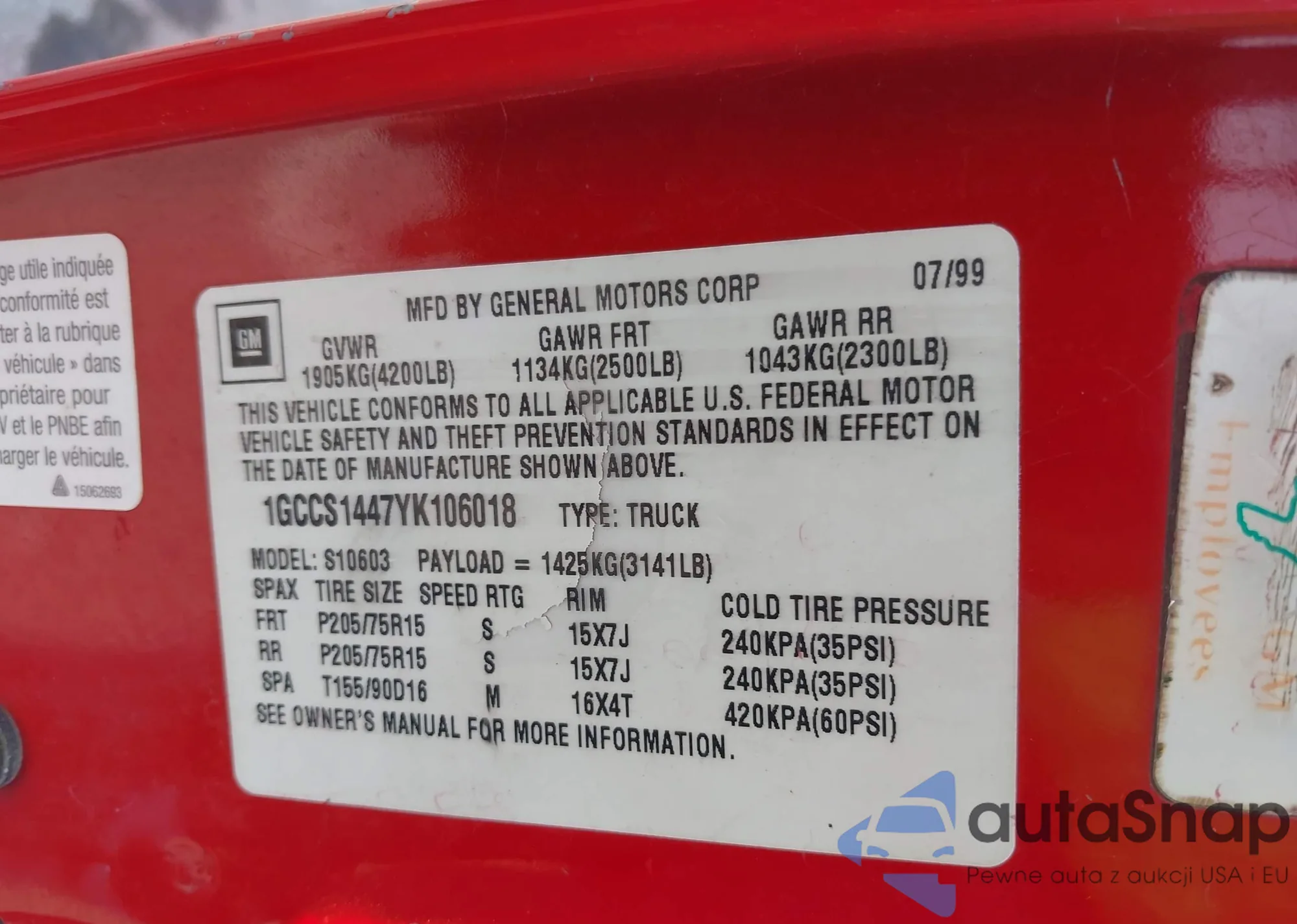 VIN: 1GCCS1953Y8239826
