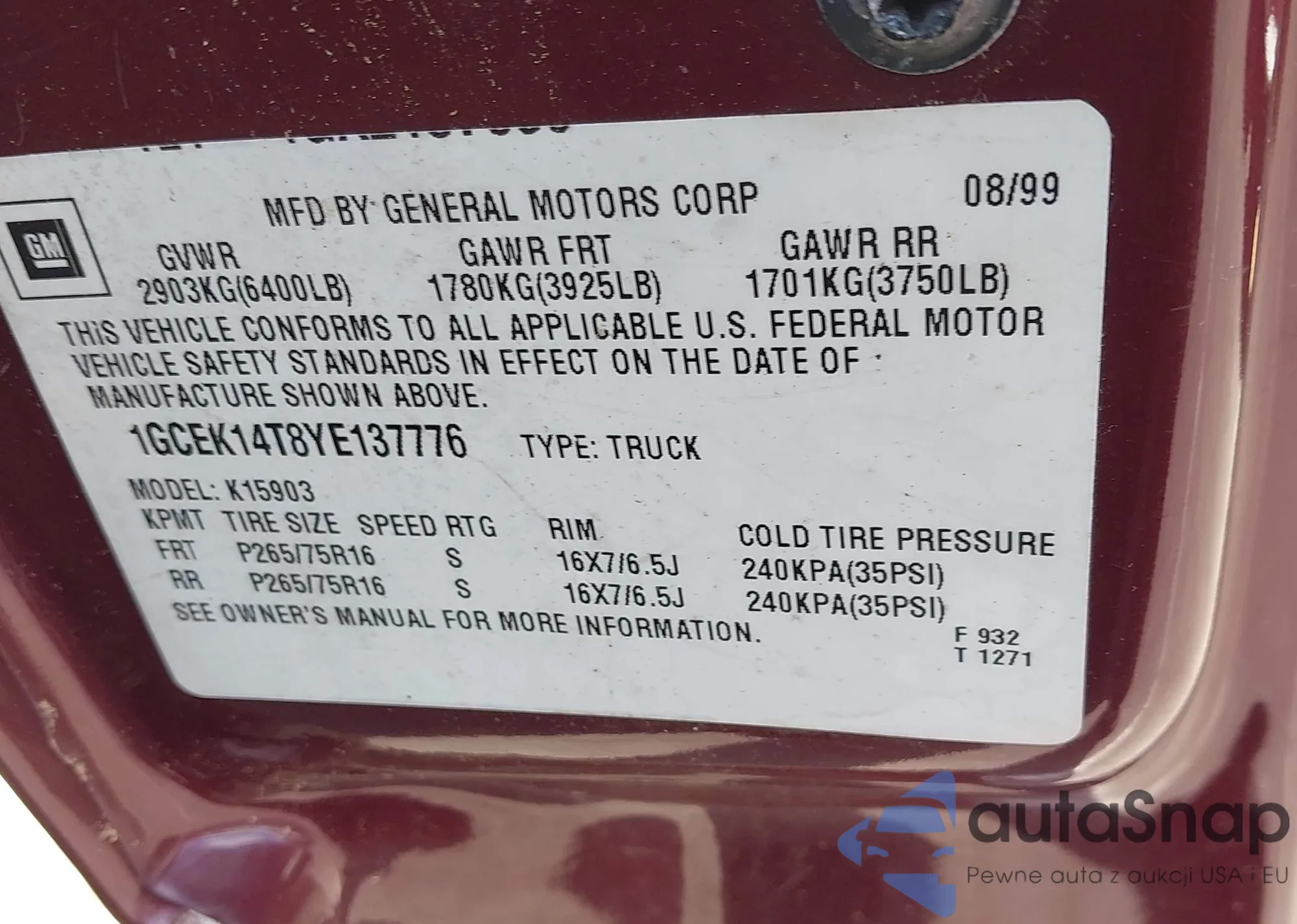VIN: 1GCEK14T8YE137776