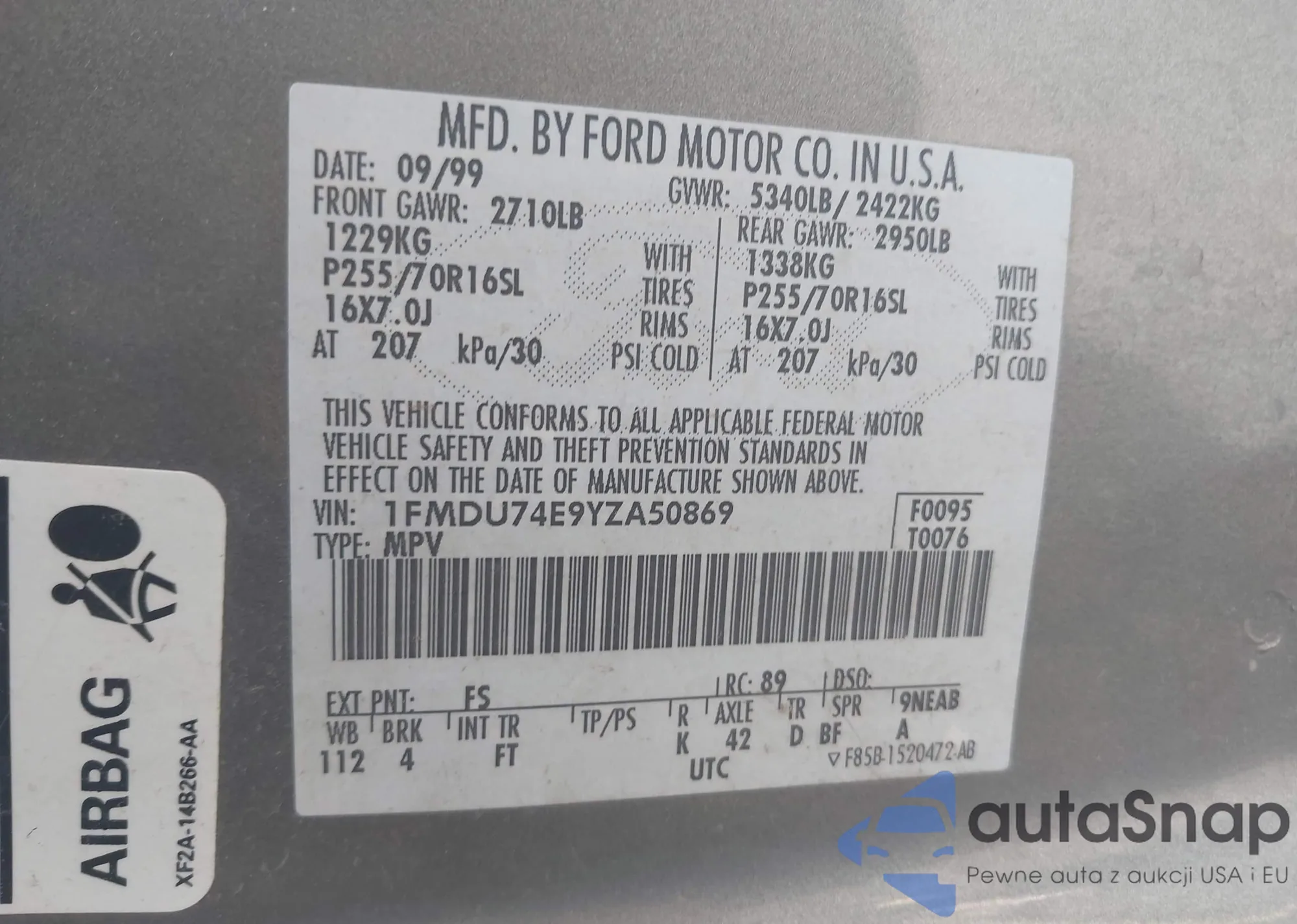 VIN: 1FMDU74E9YZA50869
