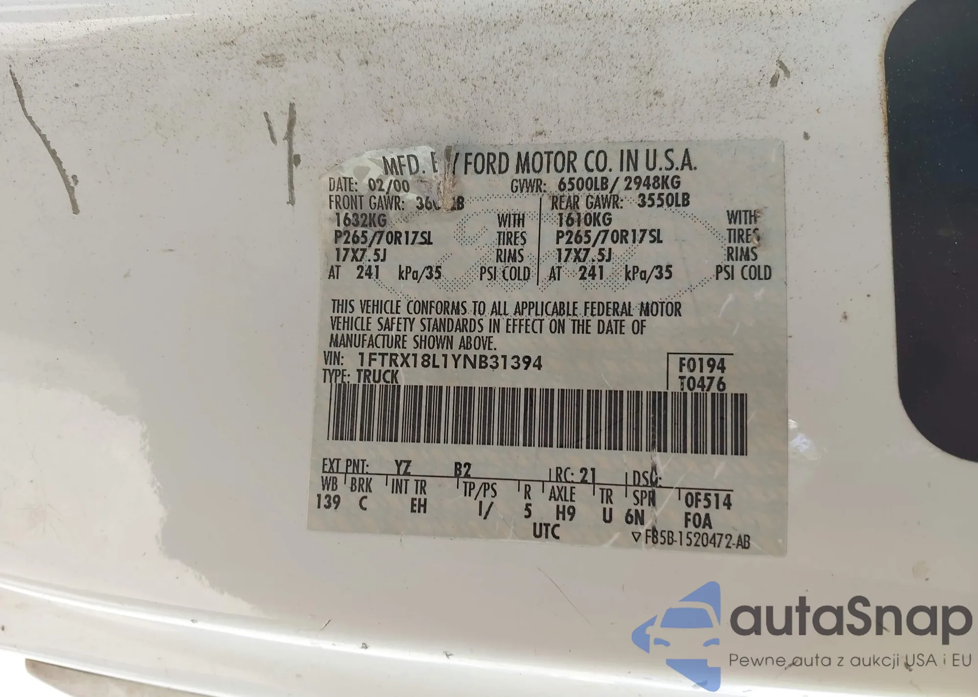 • VIN: 1FTRX18L1YNB31394