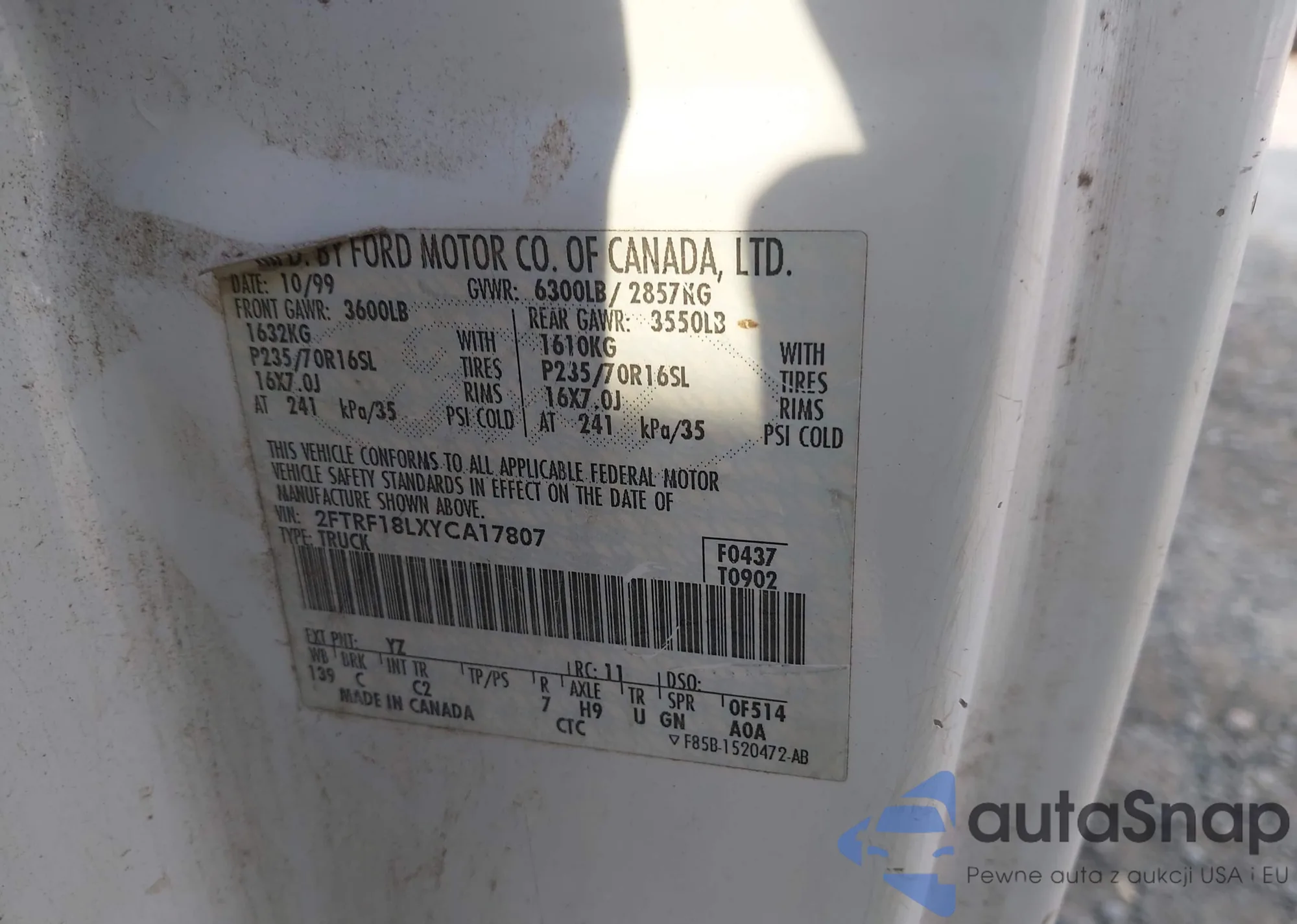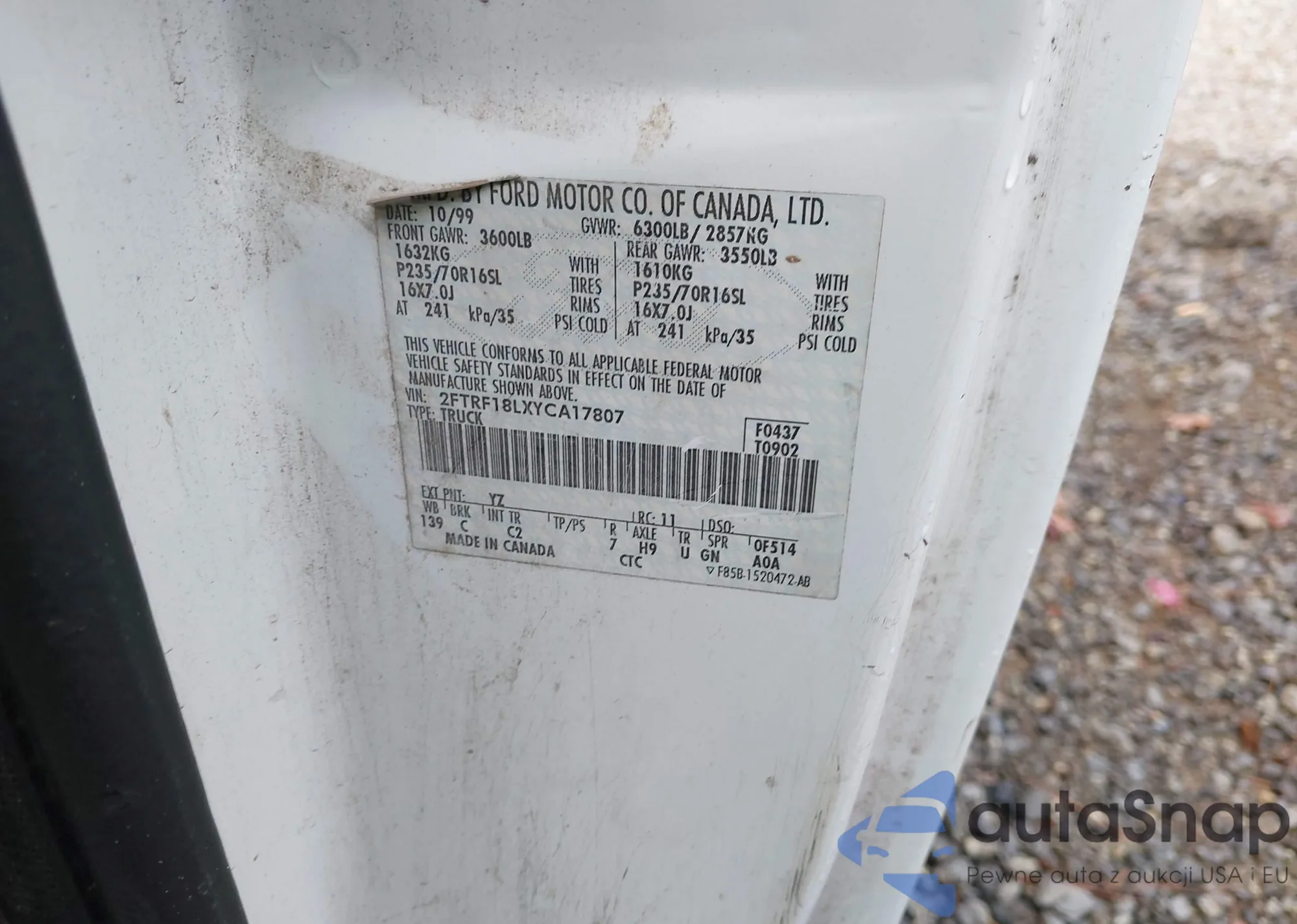VIN: 2FTRF18LXYCA17807