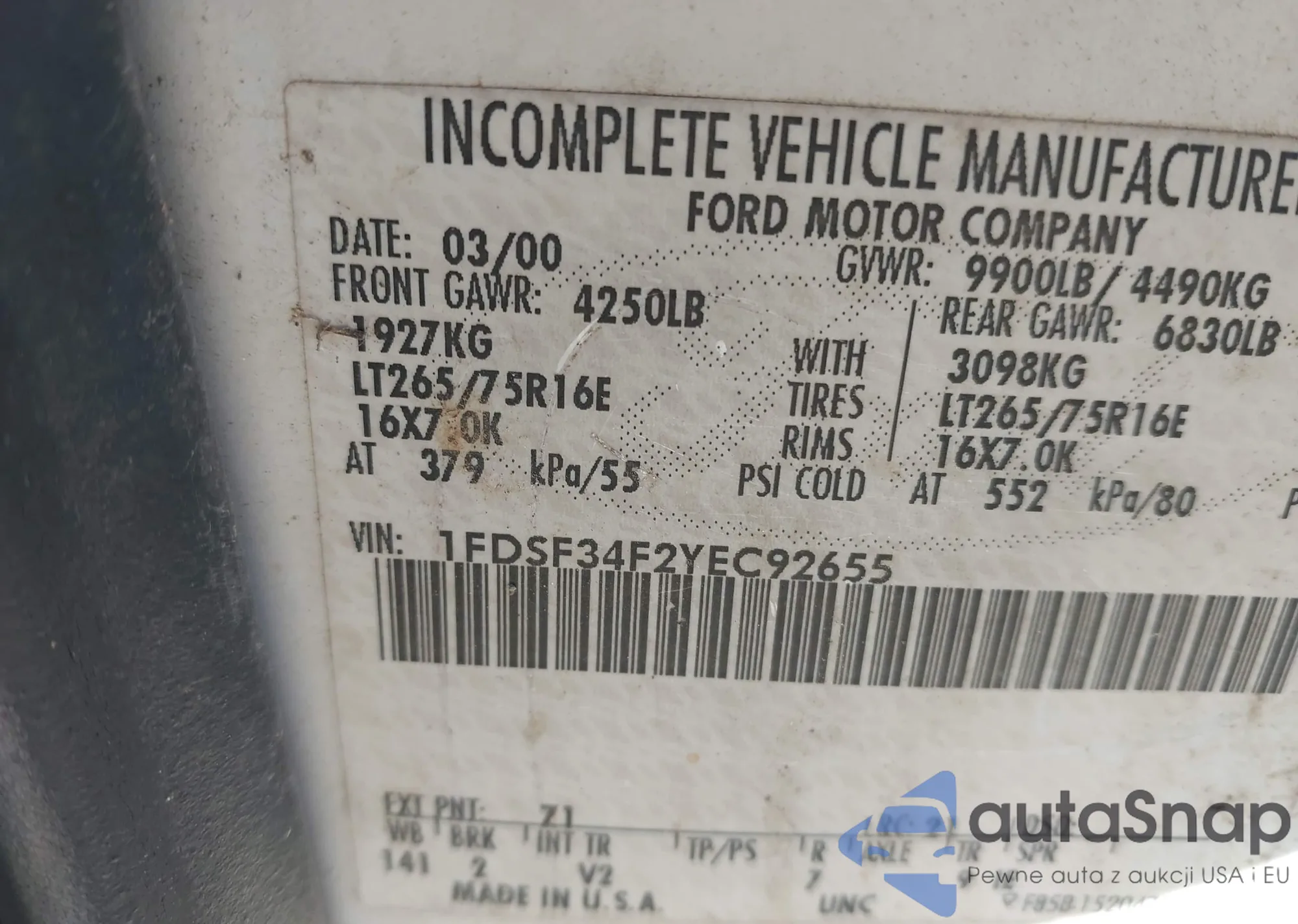 VIN: 1FDSF34F2YEC92655
