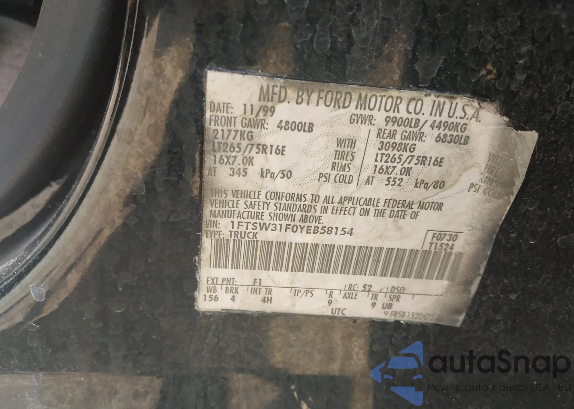 VIN: 1FTSW31F0YEB58154