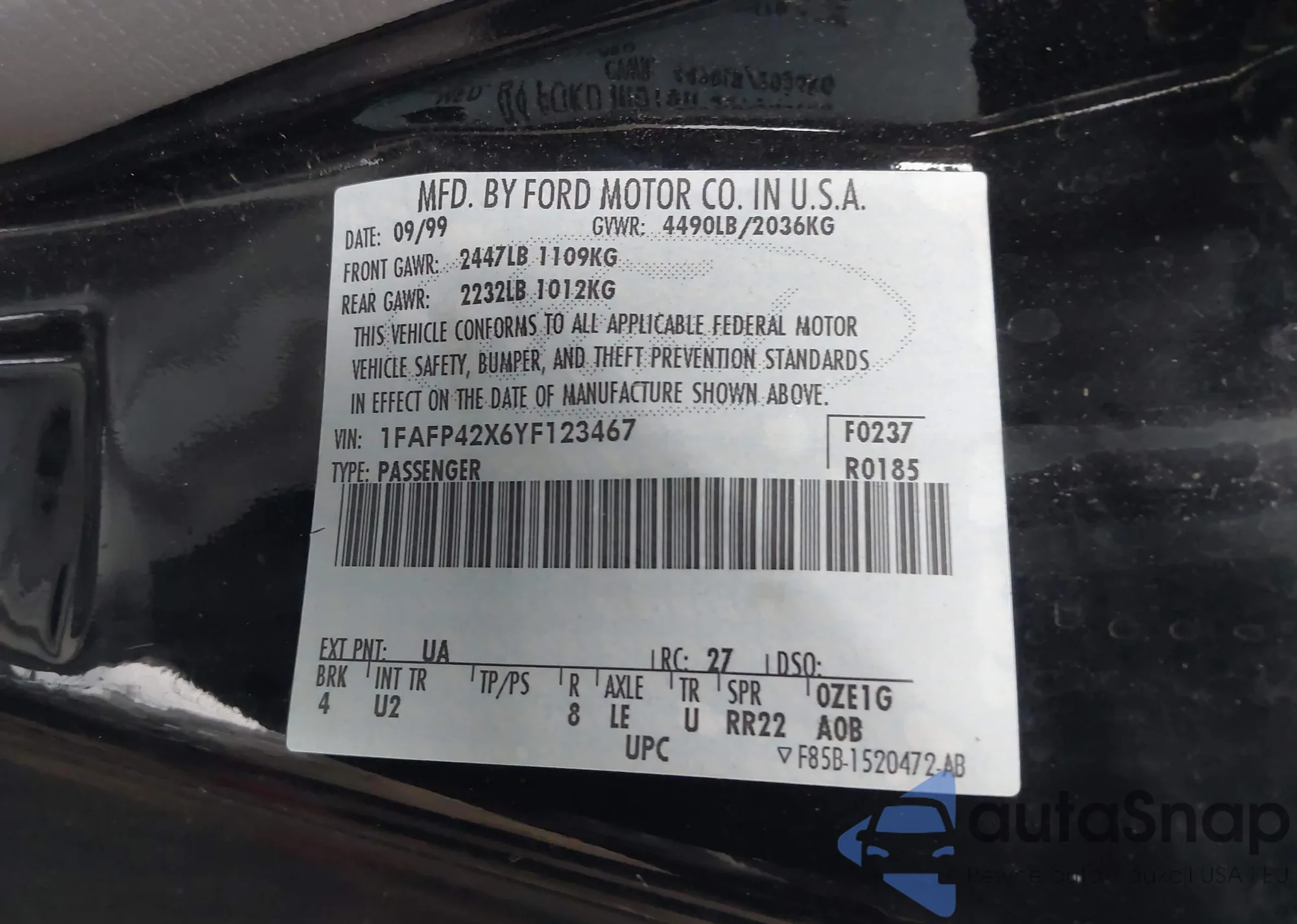 • VIN: 1FAFP42X6YF123467