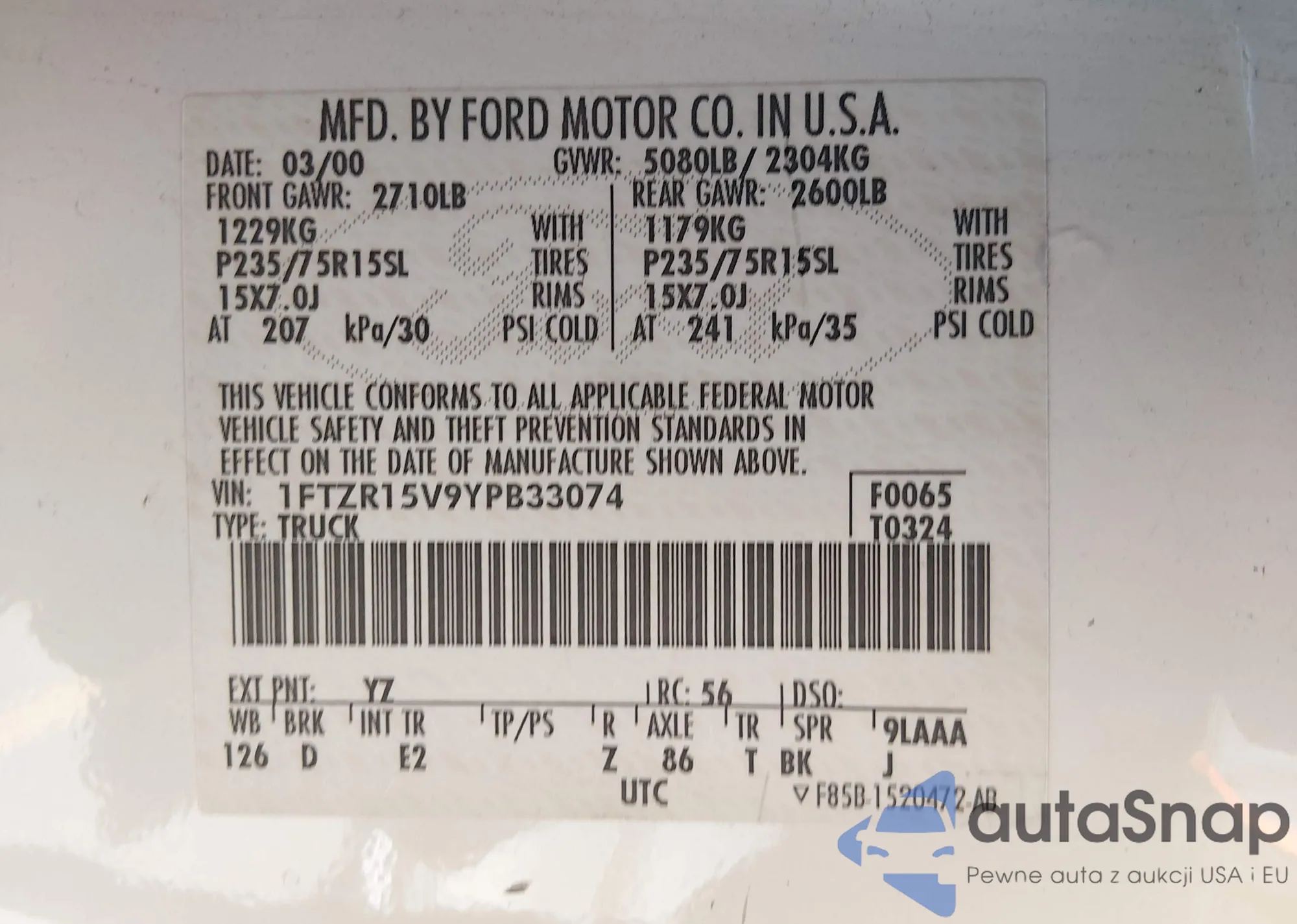 VIN: 1FTZR15V9YPB33074