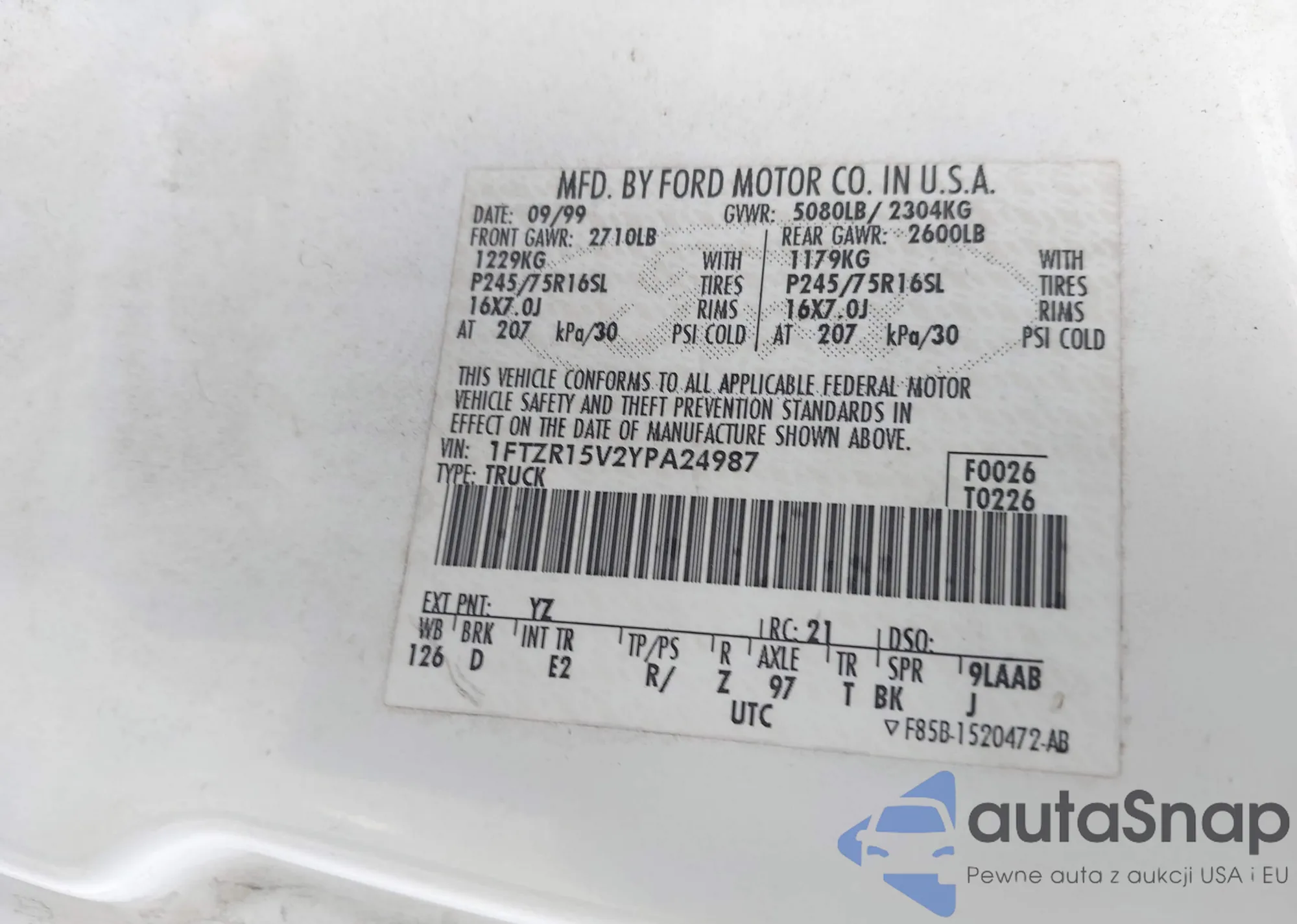 VIN: 1FTZR15V2YPA24987