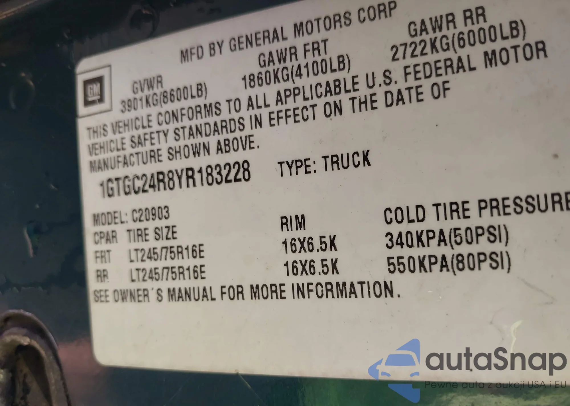 VIN: 1GTGC24R8YR183228