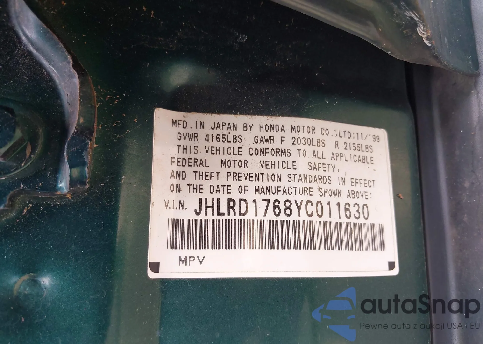 VIN: JHLRD1768YC011630