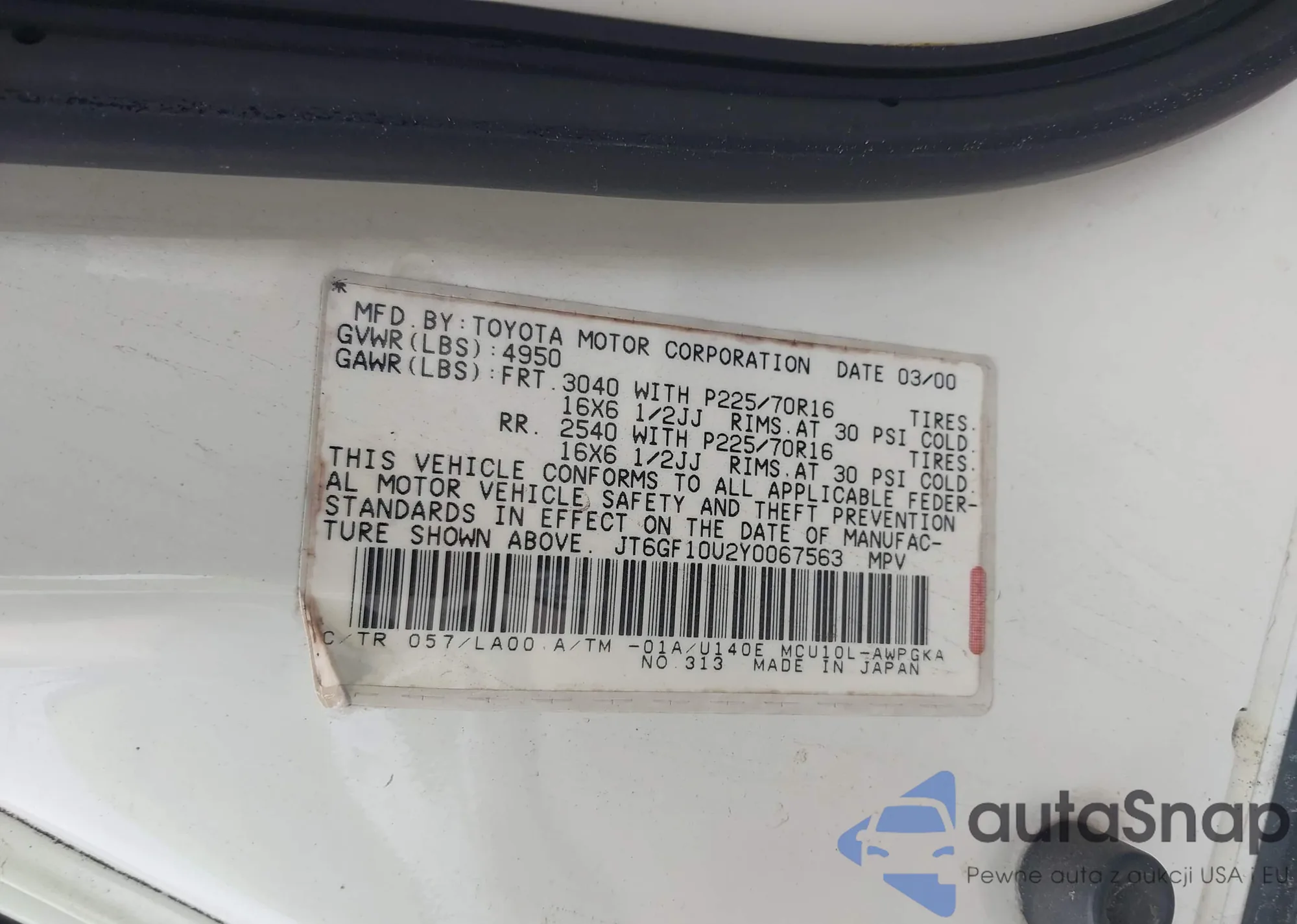 VIN: JT6GF10U2Y0067563