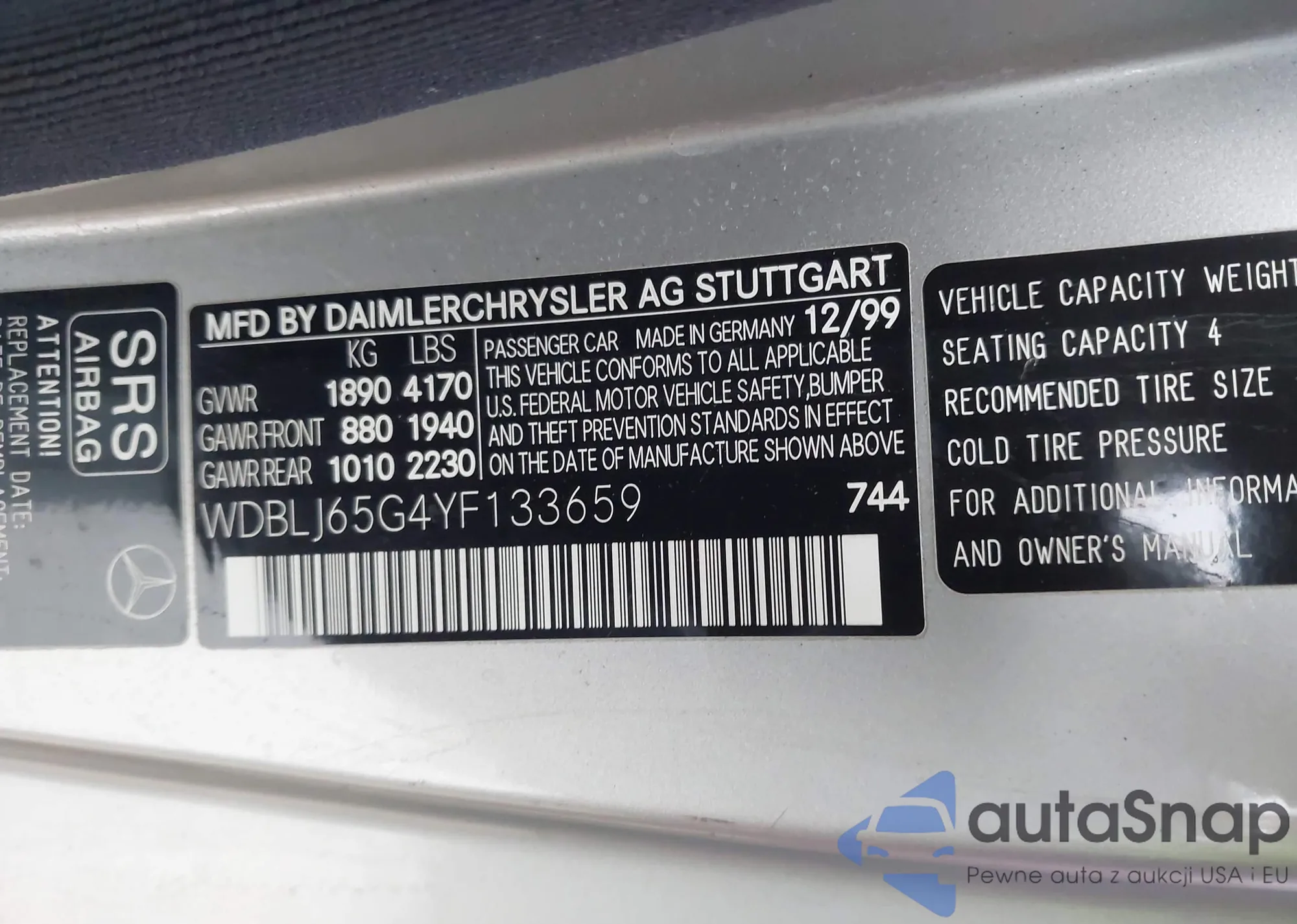 Автомобиль Mercedes-Benz CLK-klasse 2000 (VIN WDBLJ65G4YF133659) ранее не участвовал в торгах. Документы чистые, пробег соответствует или ниже среднего по рынку. Продаётся страховой компанией — рекомендуем покупку. Доставка в порт займет около 6–8 недель.
