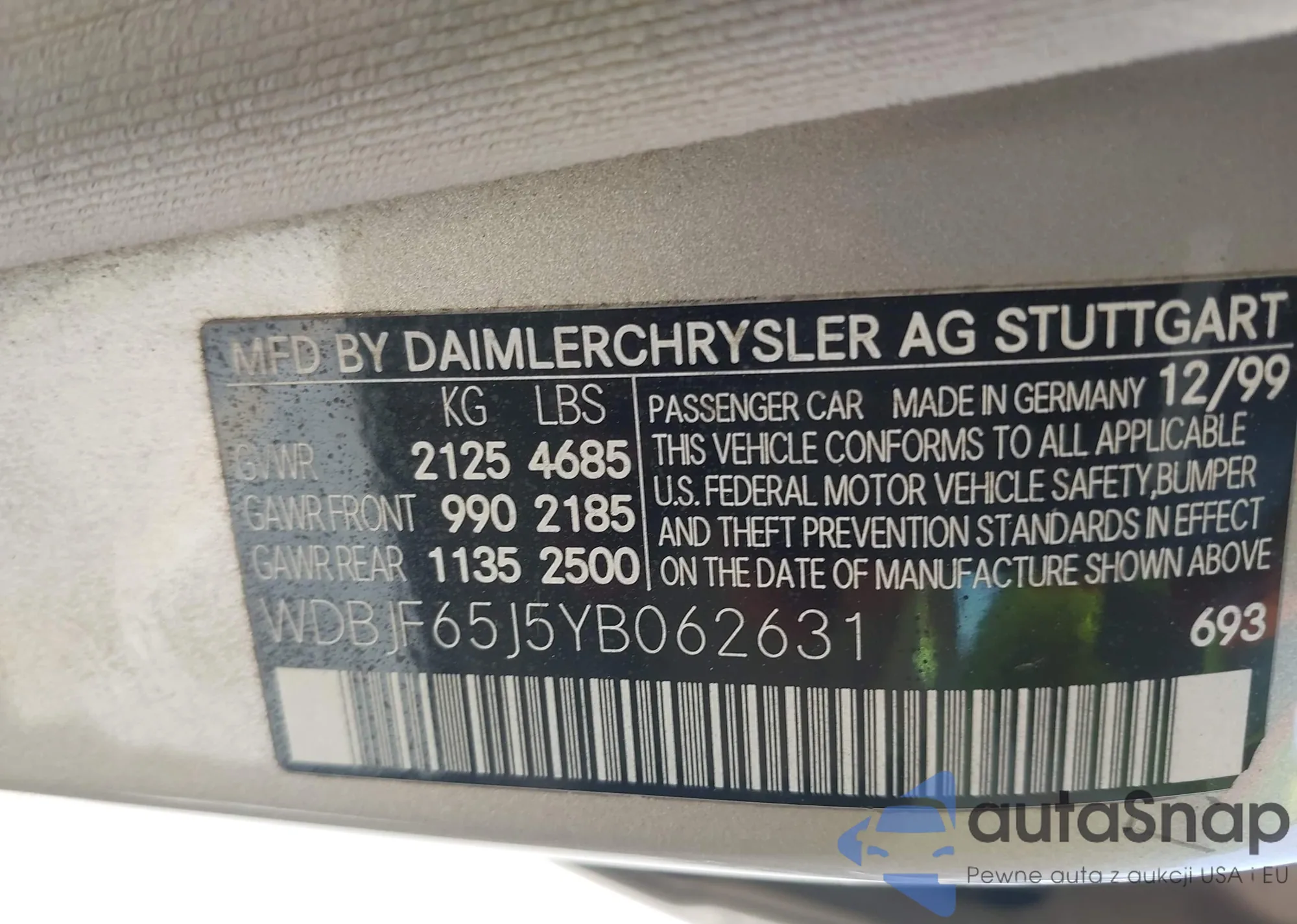 VIN: WDBJF65J5YB062631