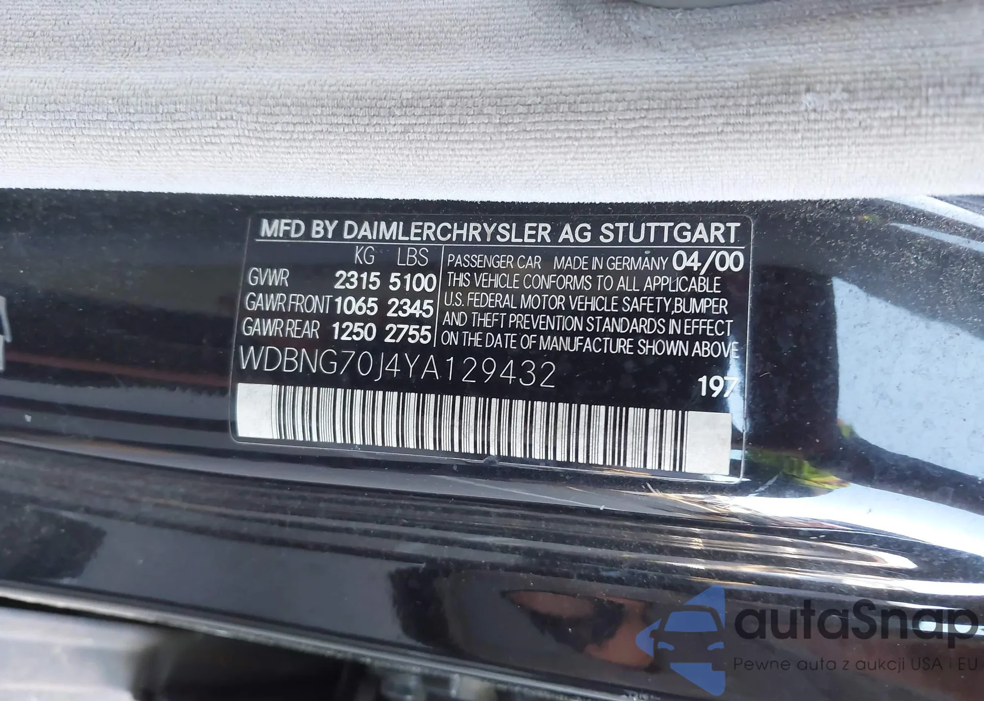 Автомобиль Mercedes-Benz S-klasse 2000 (VIN WDBNG70J4YA129432) продаётся непроверенным продавцом. Рекомендуем проверить отчет Carfax и подтвердить возможность регистрации перед покупкой.