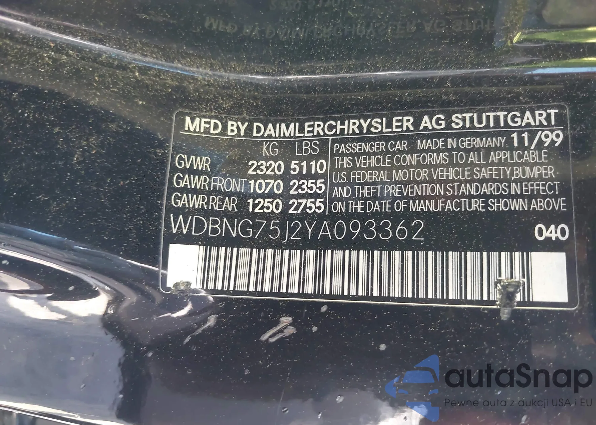 Автомобиль Mercedes-Benz S-klasse 2000 (VIN WDBNG75J2YA093362) имеет документы, препятствующие регистрации. Могут возникнуть сложности при экспорте и регистрации. Обратитесь к экспертам AutaSnap для поиска альтернатив.