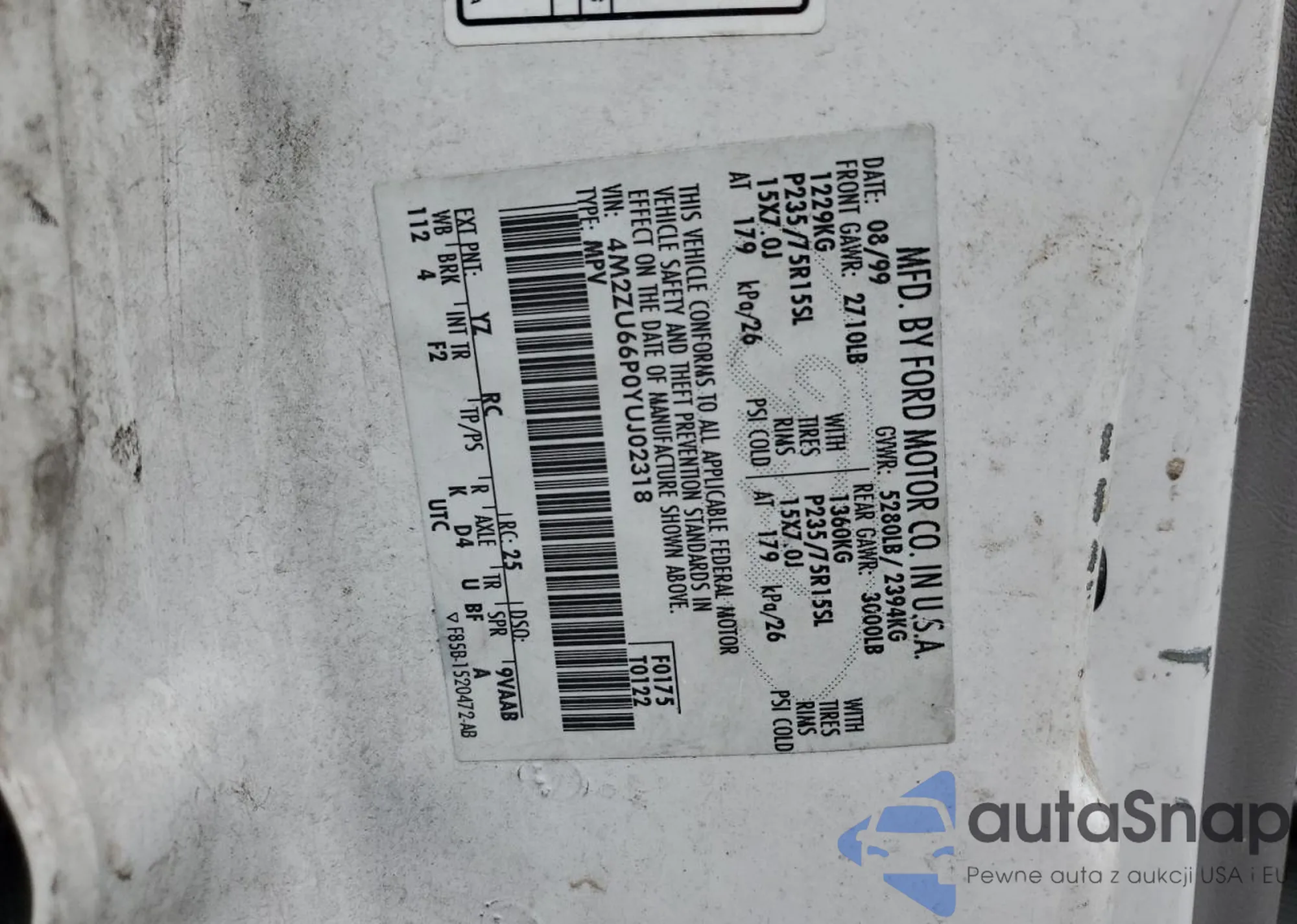 Автомобиль Mercury Mountaineer 2000 (VIN 4M2ZU66P0YUJ02318) ранее не участвовал в торгах. Документы чистые, пробег соответствует или ниже среднего по рынку. Продаётся страховой компанией — рекомендуем покупку. Доставка в порт займет около 6–8 недель.