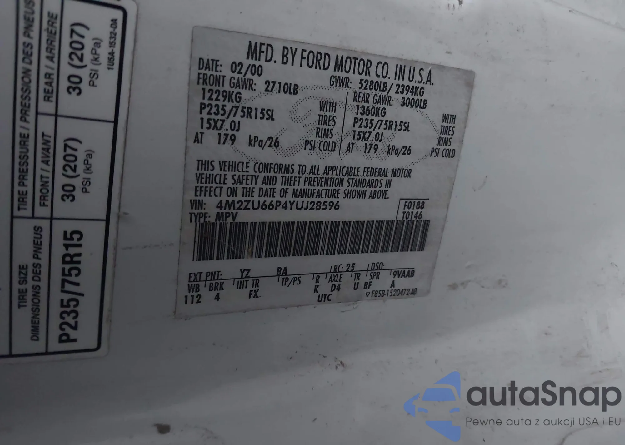 VIN: 4M2ZU66P4YUJ28596