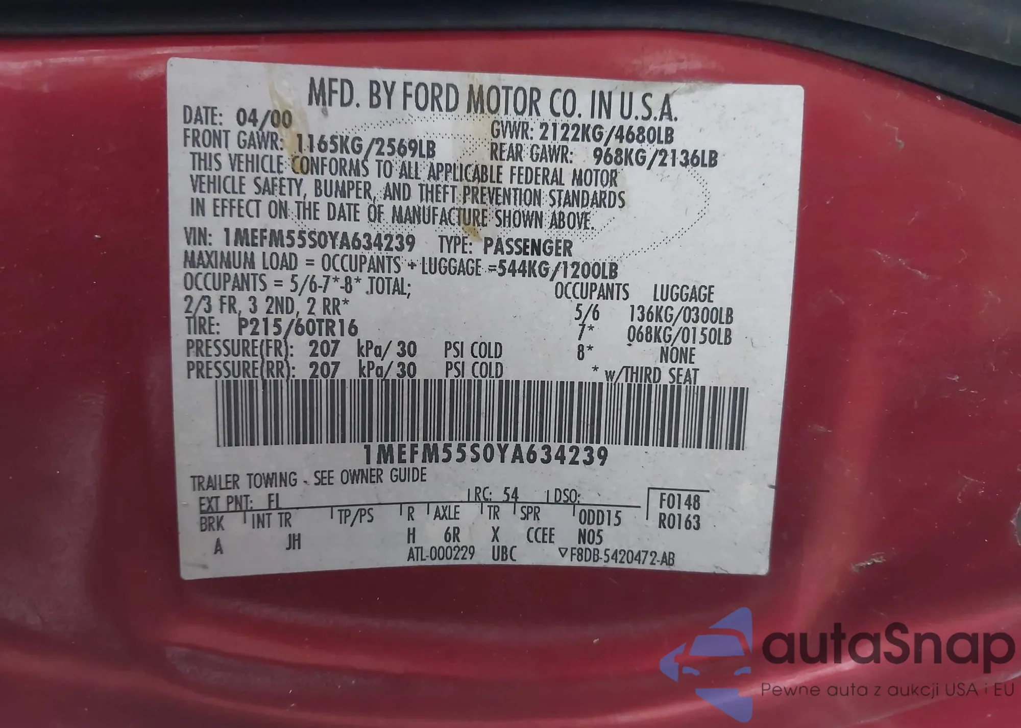 Автомобиль Mercury Sable 2000 (VIN 1MEFM55S0YA634239) ранее не участвовал в торгах. Документы чистые, пробег соответствует или ниже среднего по рынку. Продаётся страховой компанией — рекомендуем покупку. Доставка в порт займет около 6–8 недель.