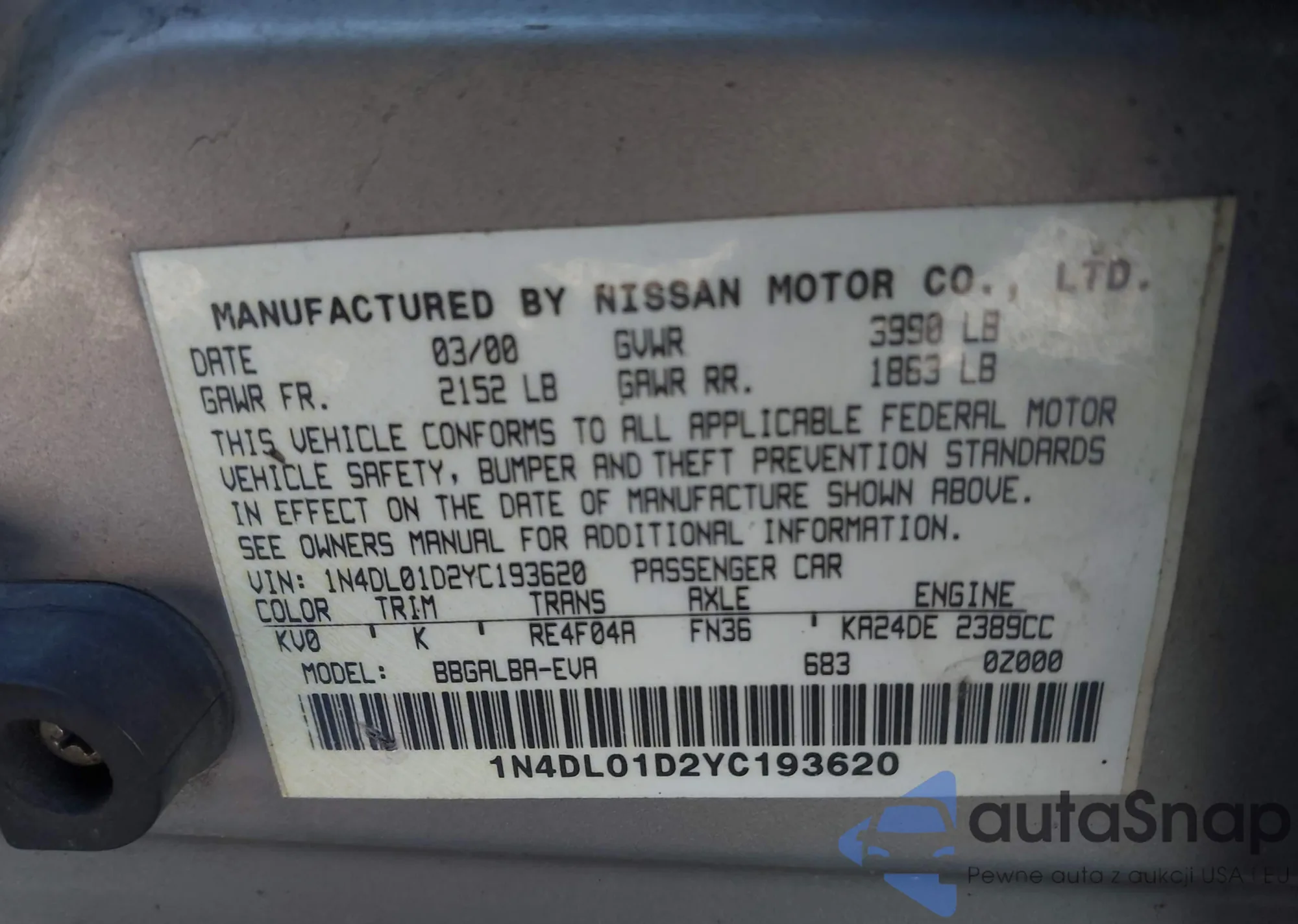 VIN: 1N4DL01D2YC193620