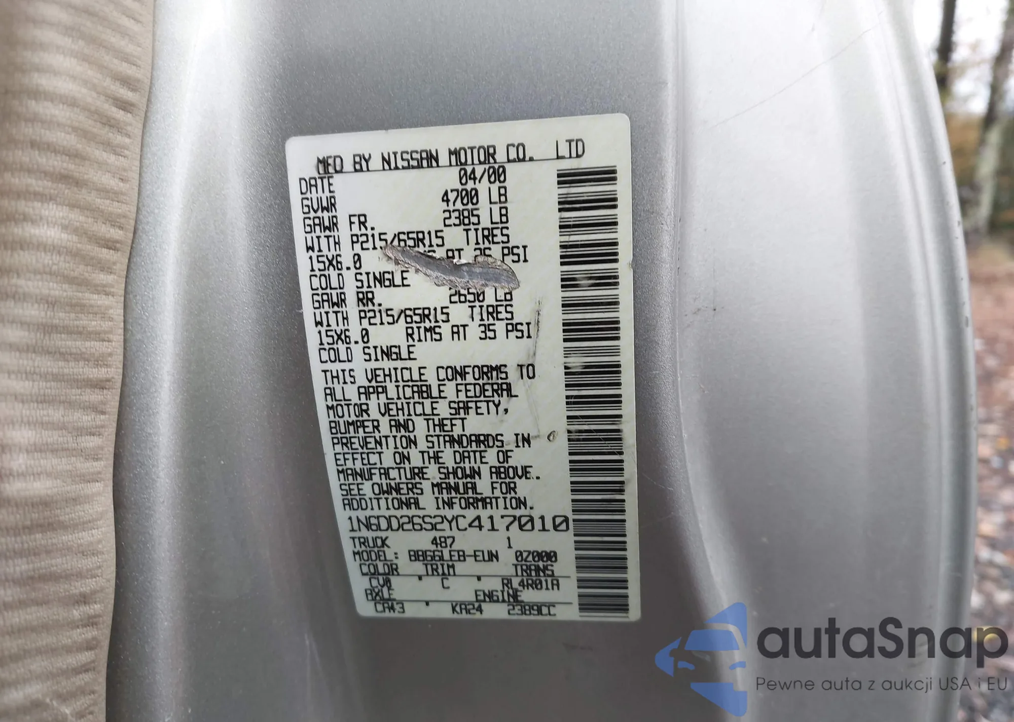 Автомобиль Nissan Navara (Frontier) 2000 (VIN 1N6DD26S2YC417010) продаётся непроверенным продавцом. Рекомендуем проверить отчет Carfax и подтвердить возможность регистрации перед покупкой.