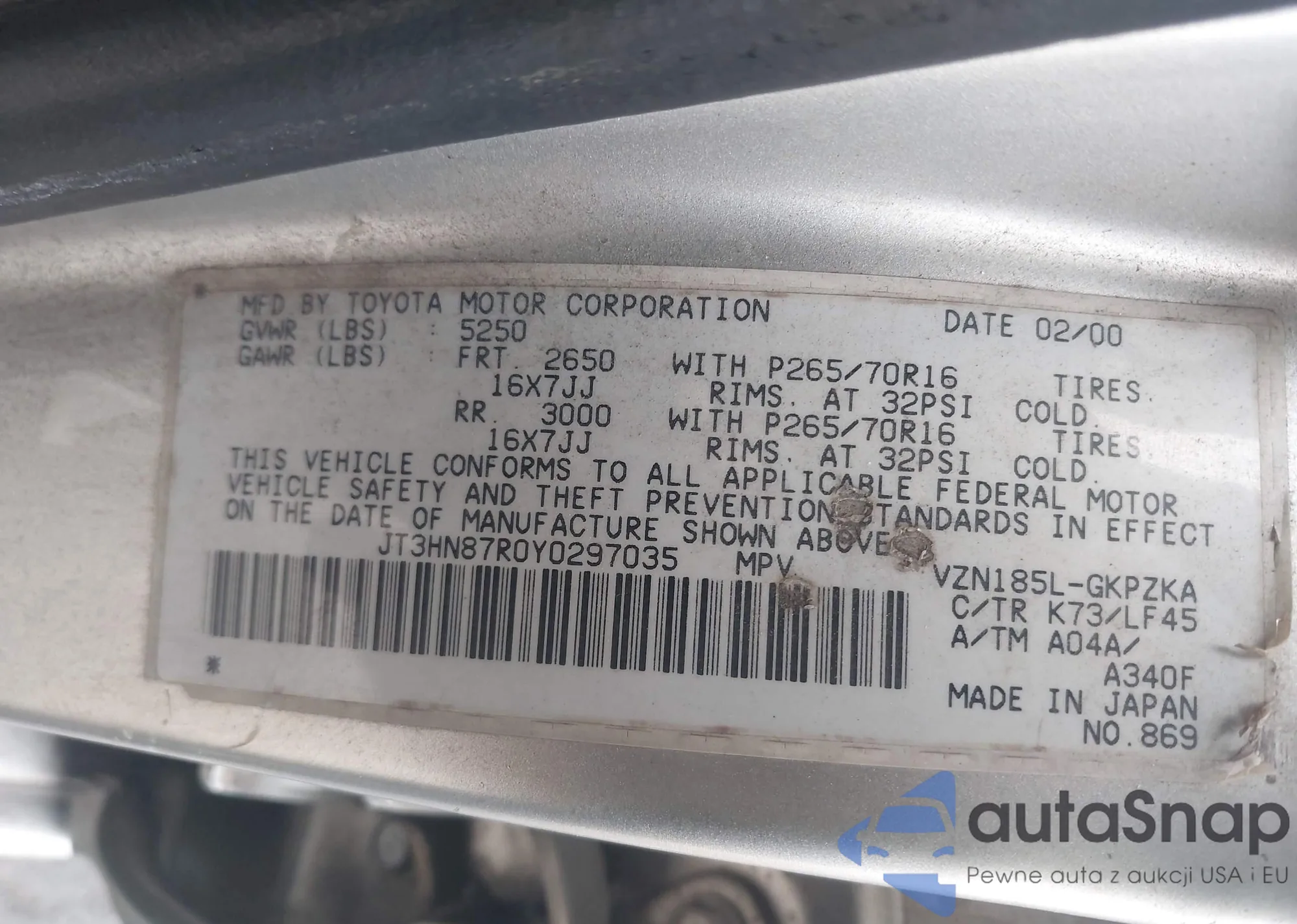VIN: JT3HN87R0Y0297035