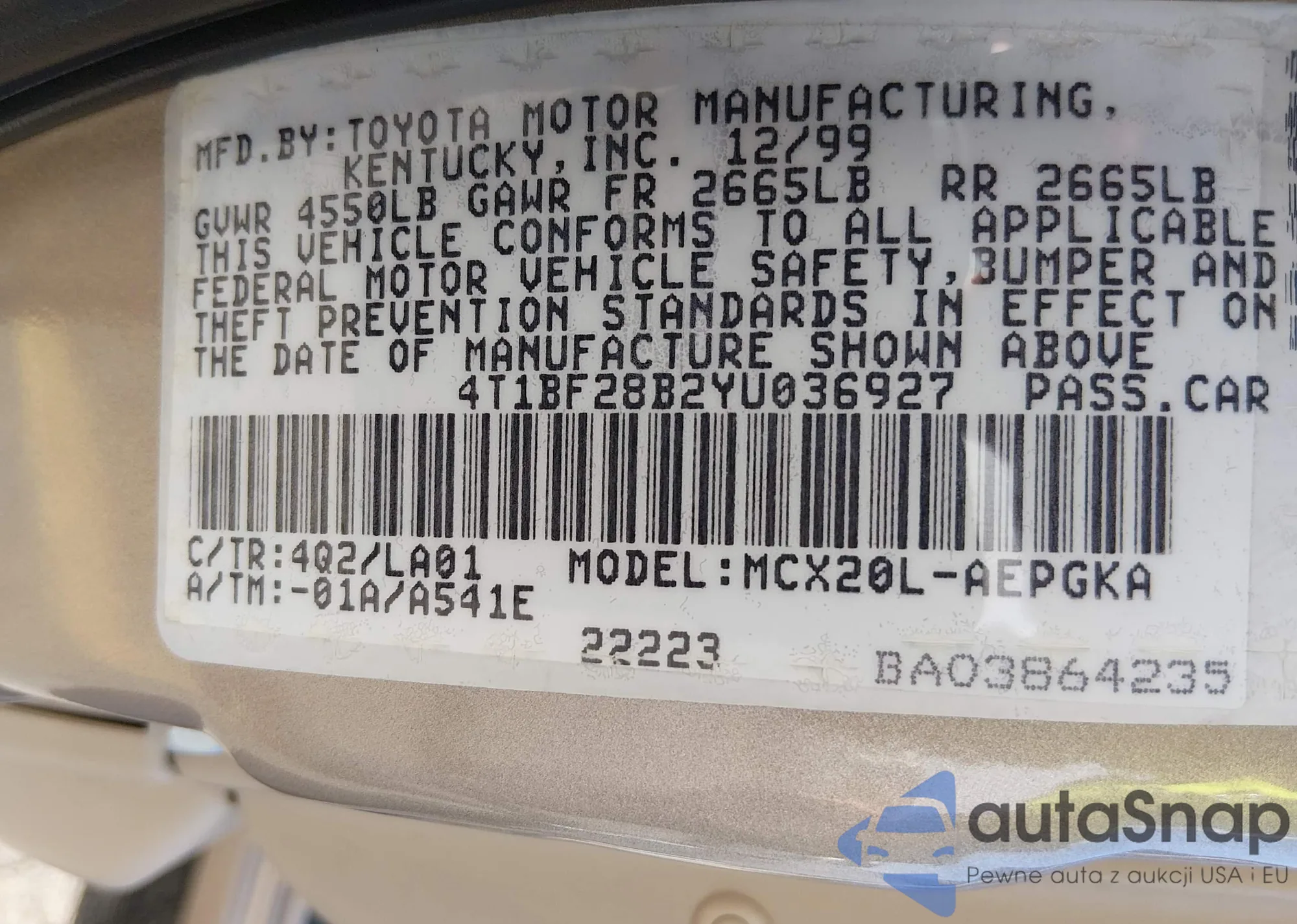VIN: 4T1BF28B2YU036927