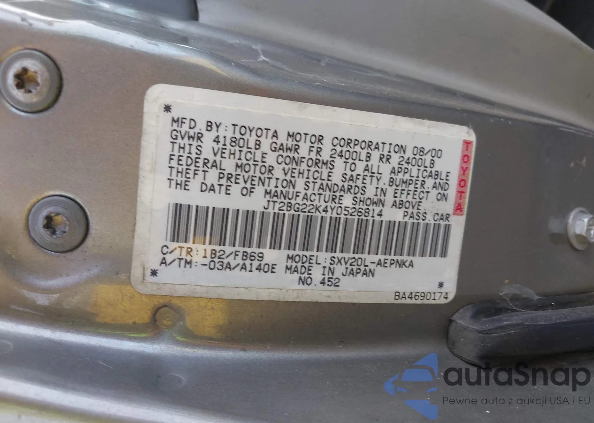 VIN: JT2BG22K4Y0526814