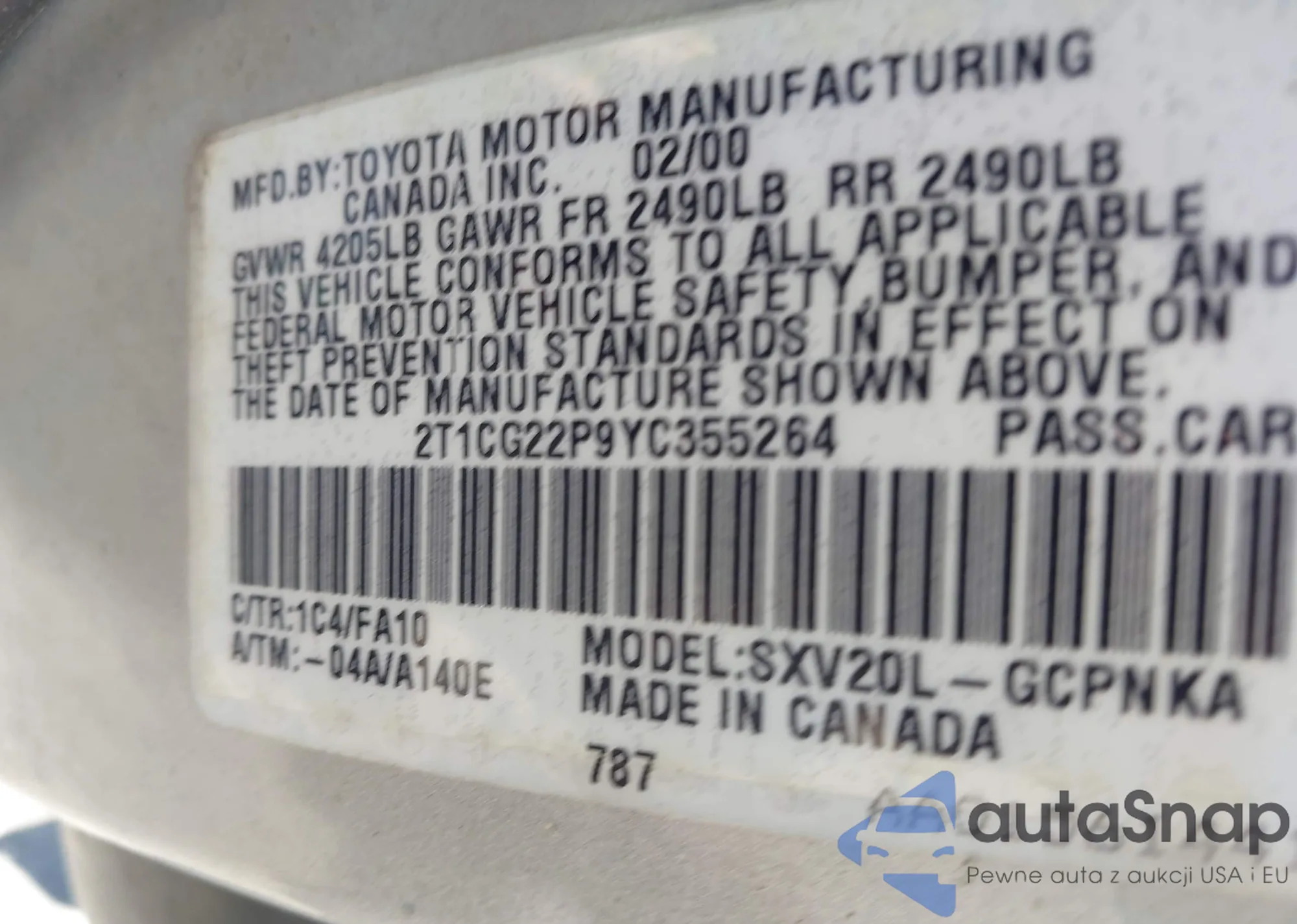 VIN: 2T1CG22P9YC355264