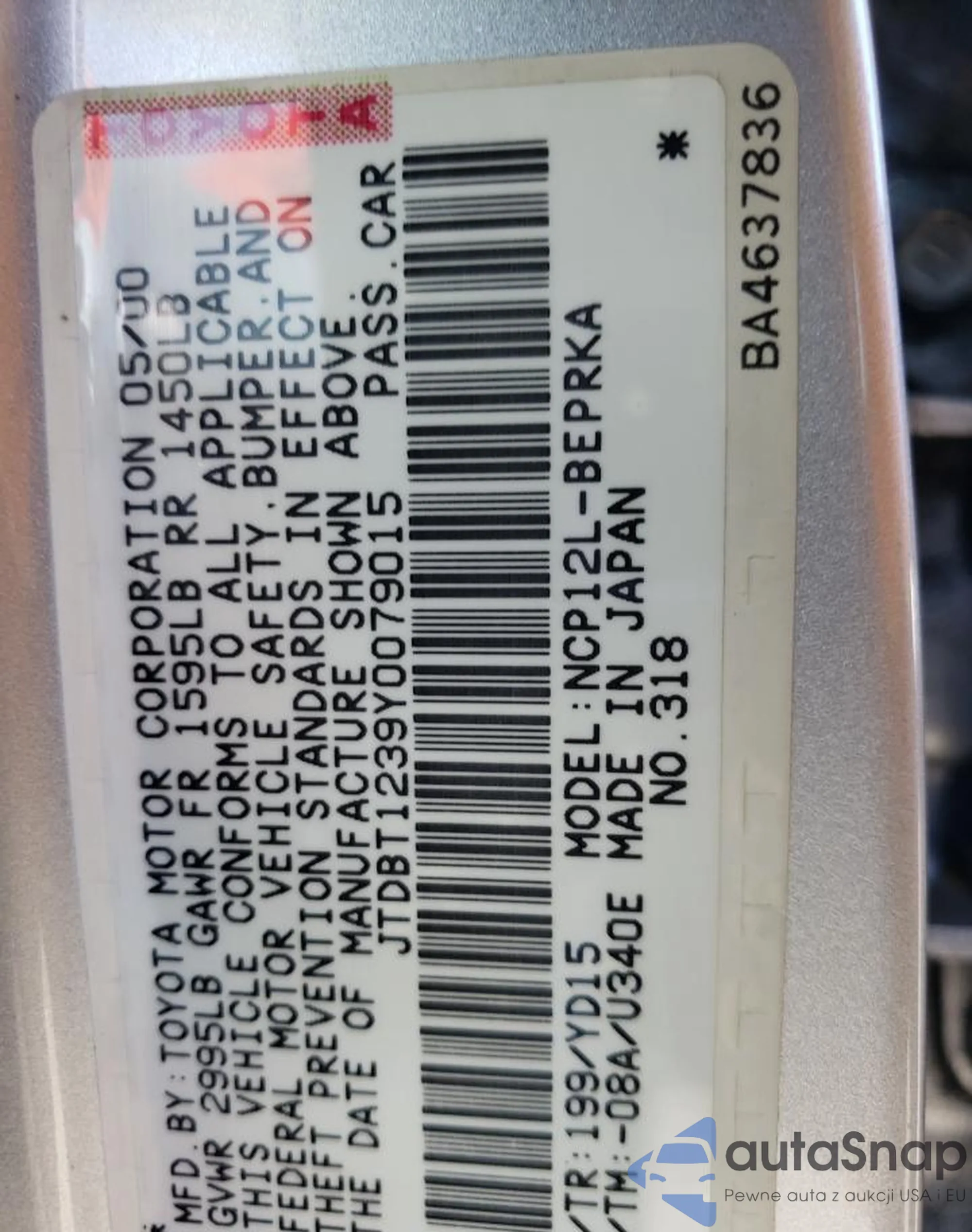 VIN: JTDBT1239Y0079015