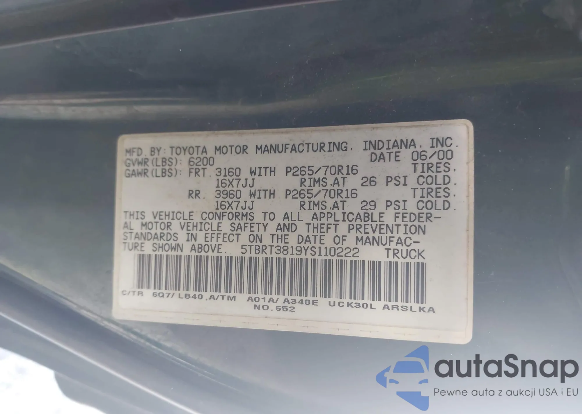 VIN: 5TBRT3819YS110222