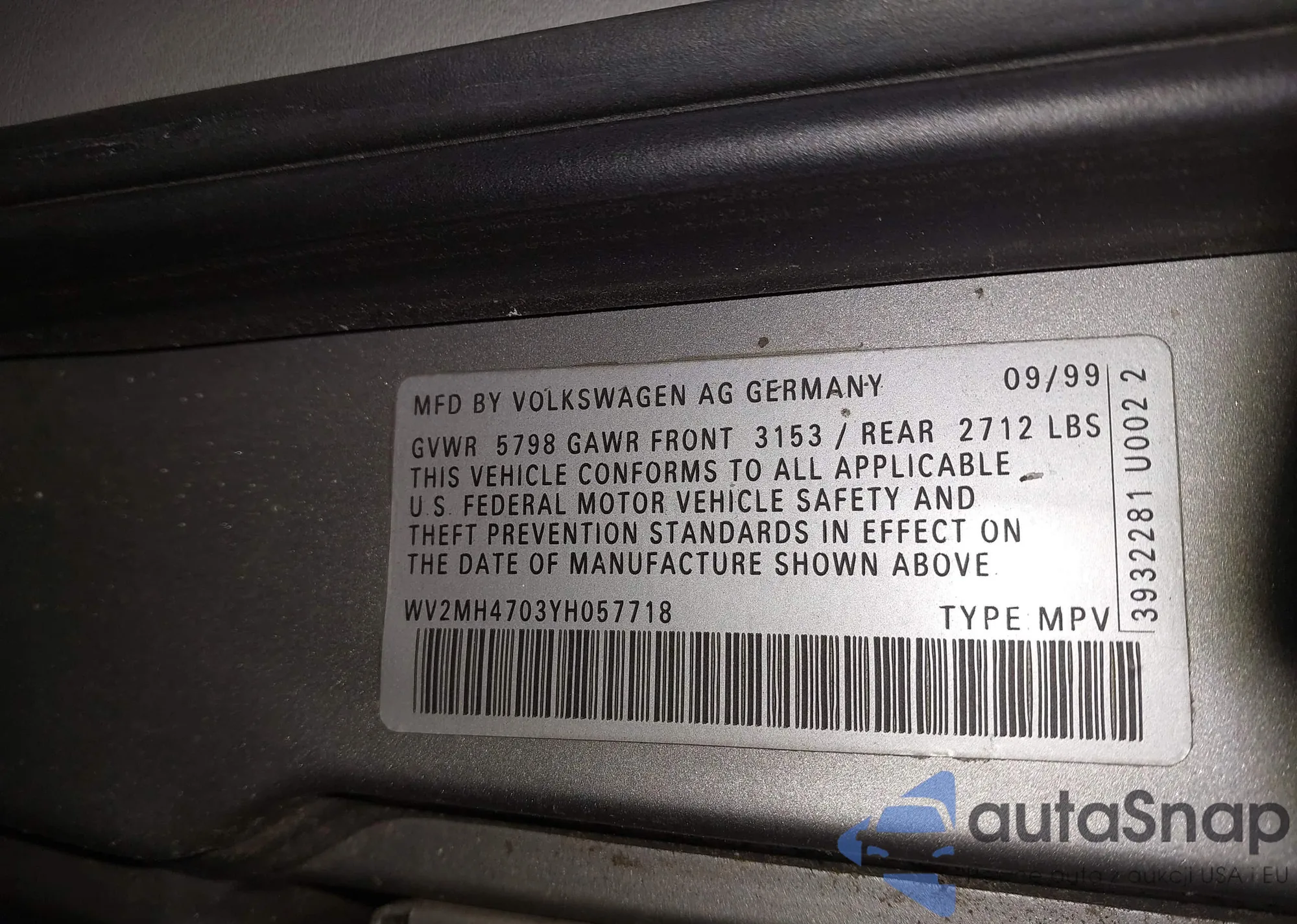 VIN: WV2MH4703YH057718