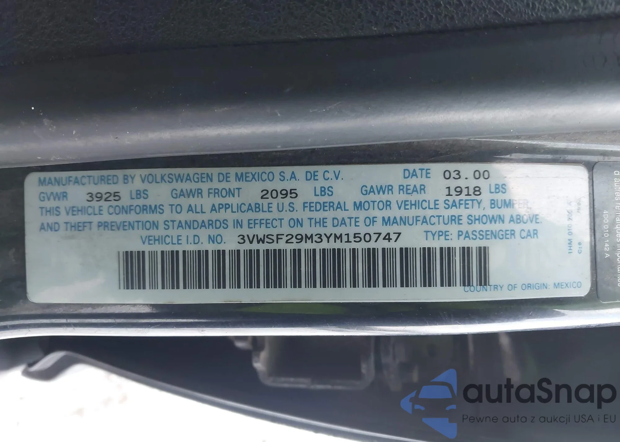 VIN: 3VWSF29M3YM150747