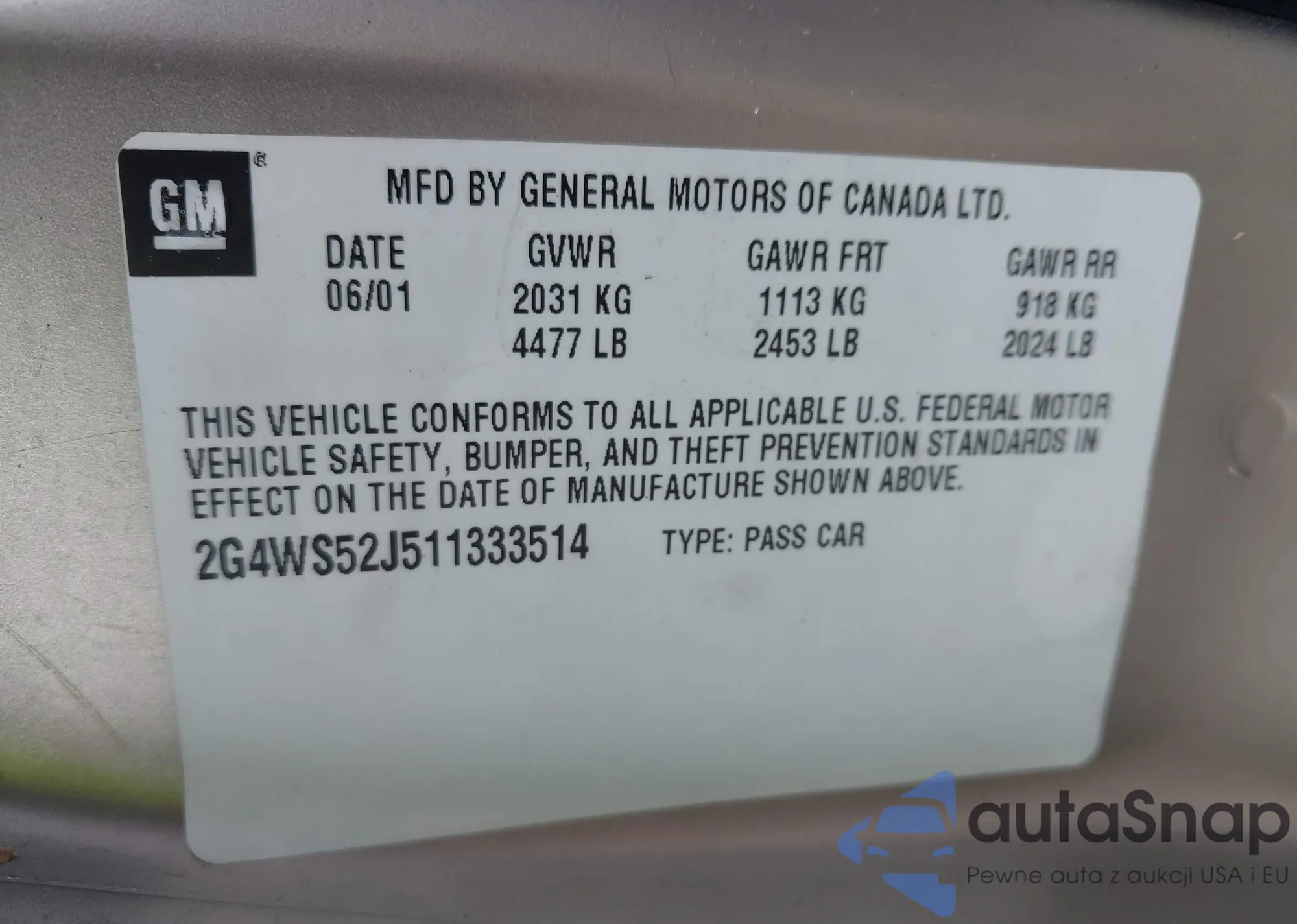 VIN: 2G4WS52J511333514