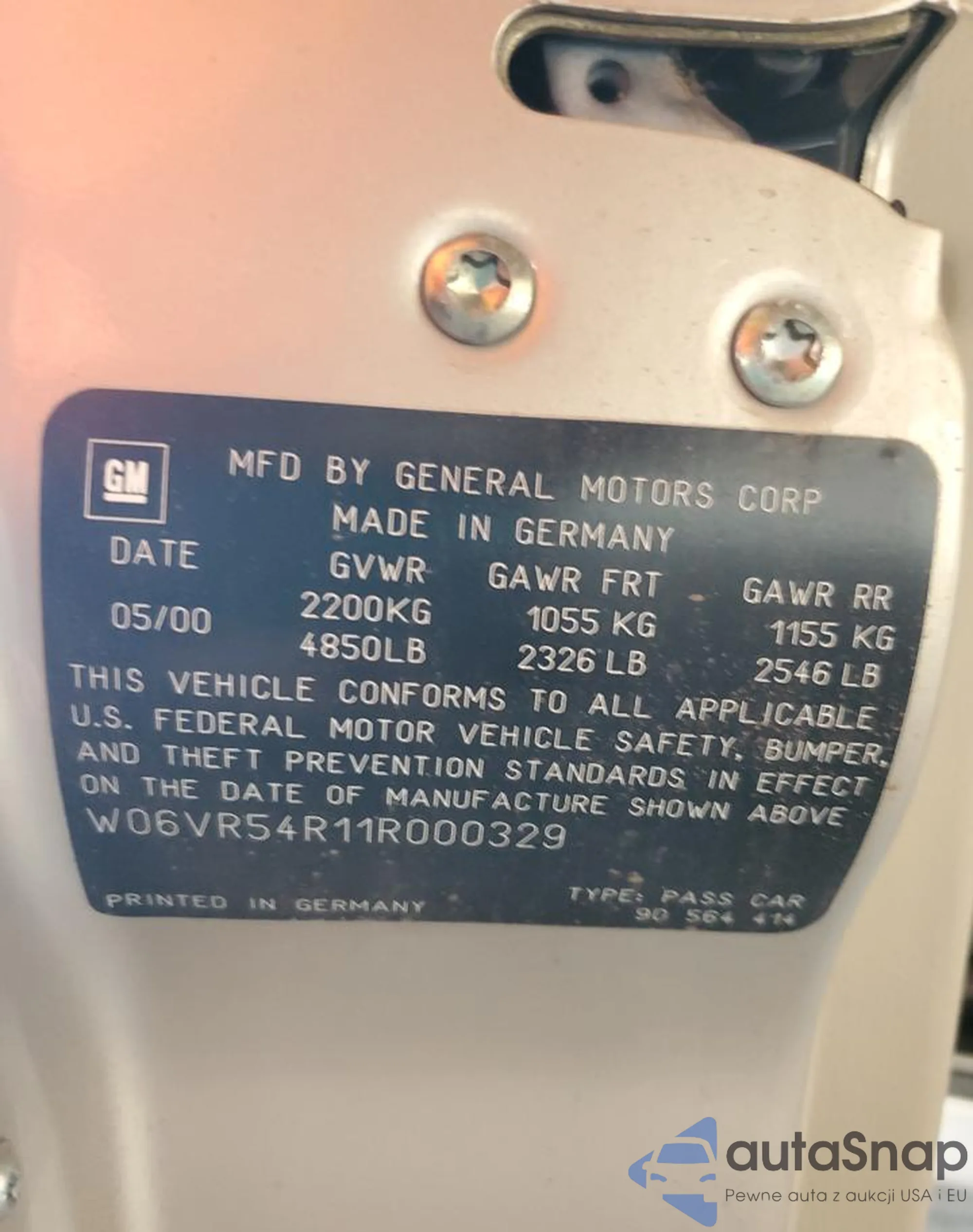 VIN: W06VR54R11R000329