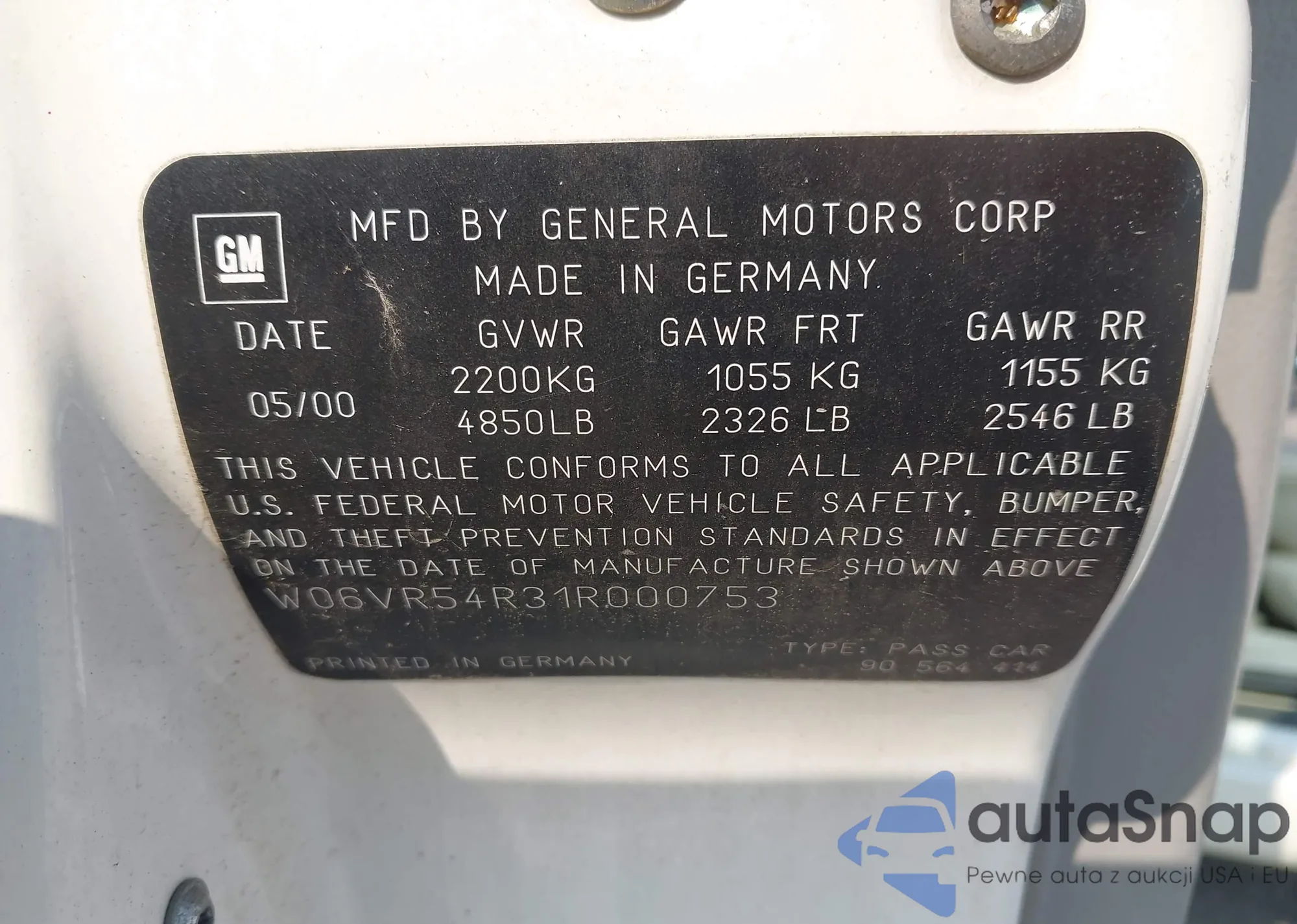 VIN: W06VR54R31R000753