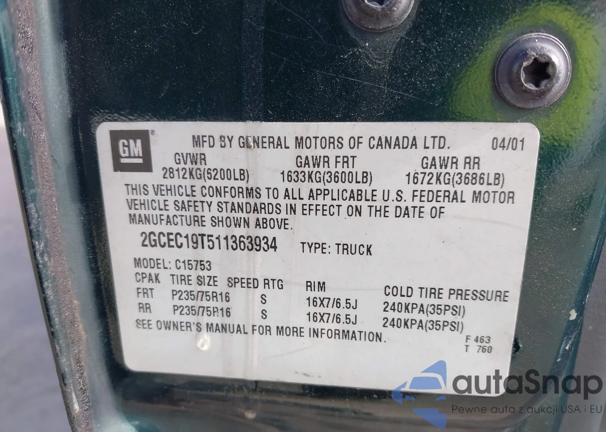 VIN: 2GCEC19T511363934