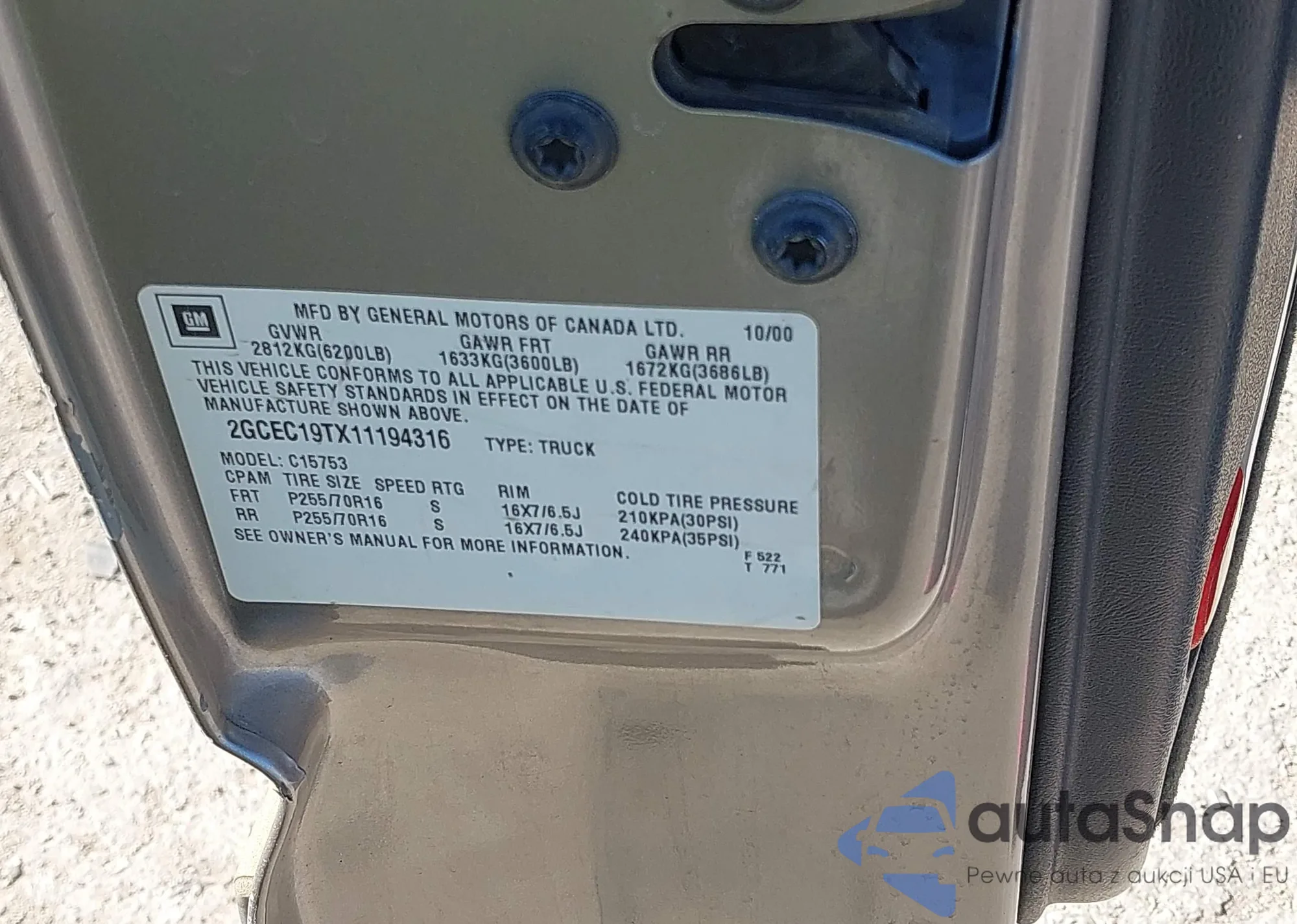 Автомобиль Chevrolet Silverado 2001 (VIN 2GCEC19TX11194316) ранее не участвовал в торгах. Документы чистые, пробег соответствует или ниже среднего по рынку. Продаётся страховой компанией — рекомендуем покупку. Доставка в порт займет около 6–8 недель.