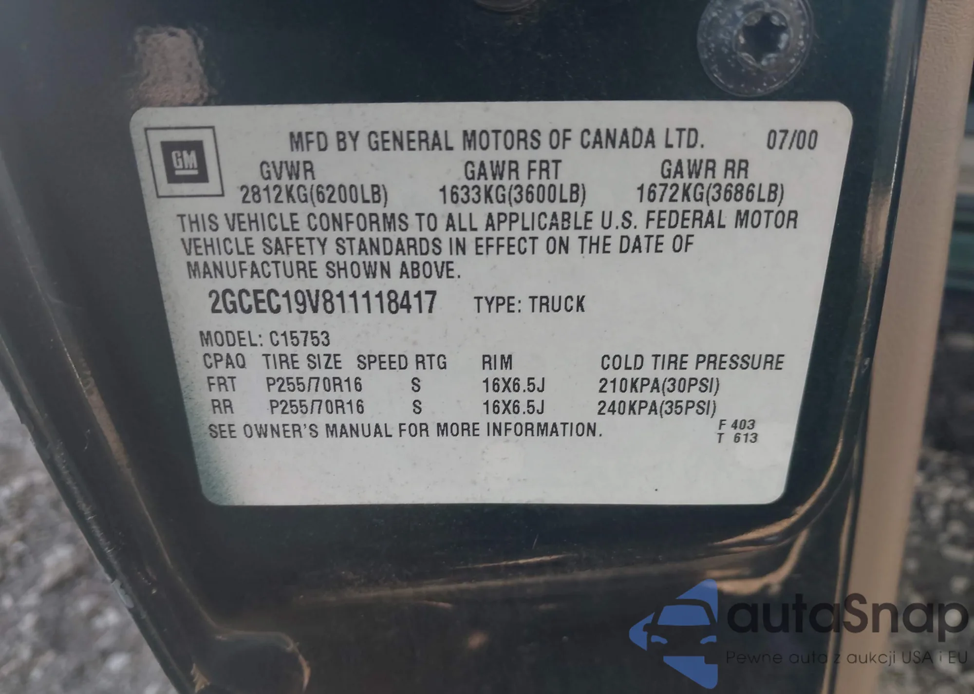• VIN: 2GCEC19V811118417