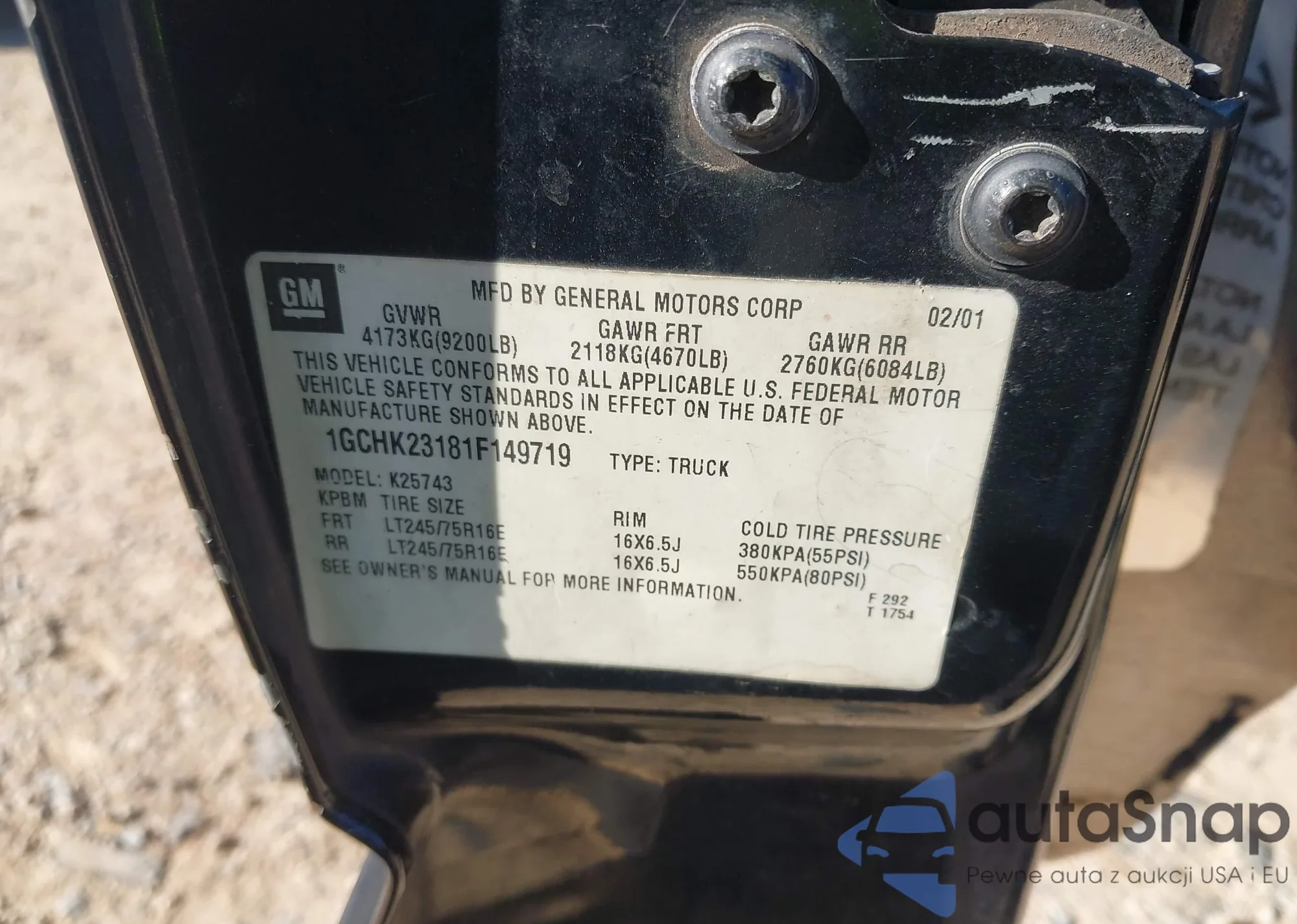 VIN: 1GCHK23181F149719