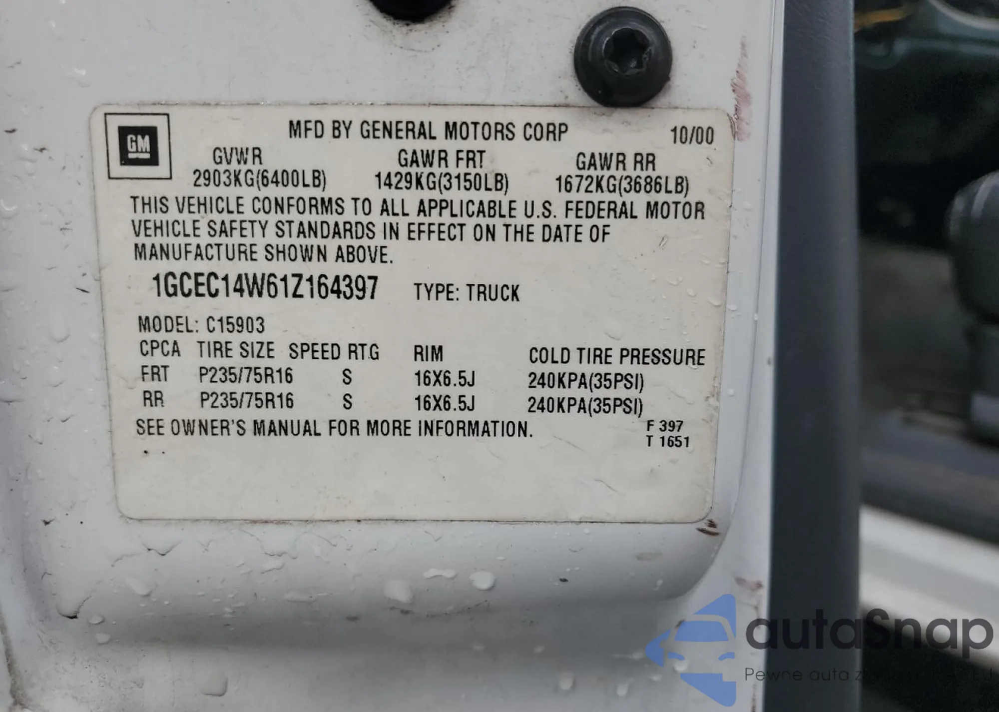 VIN: 1GCEC14W61Z164397