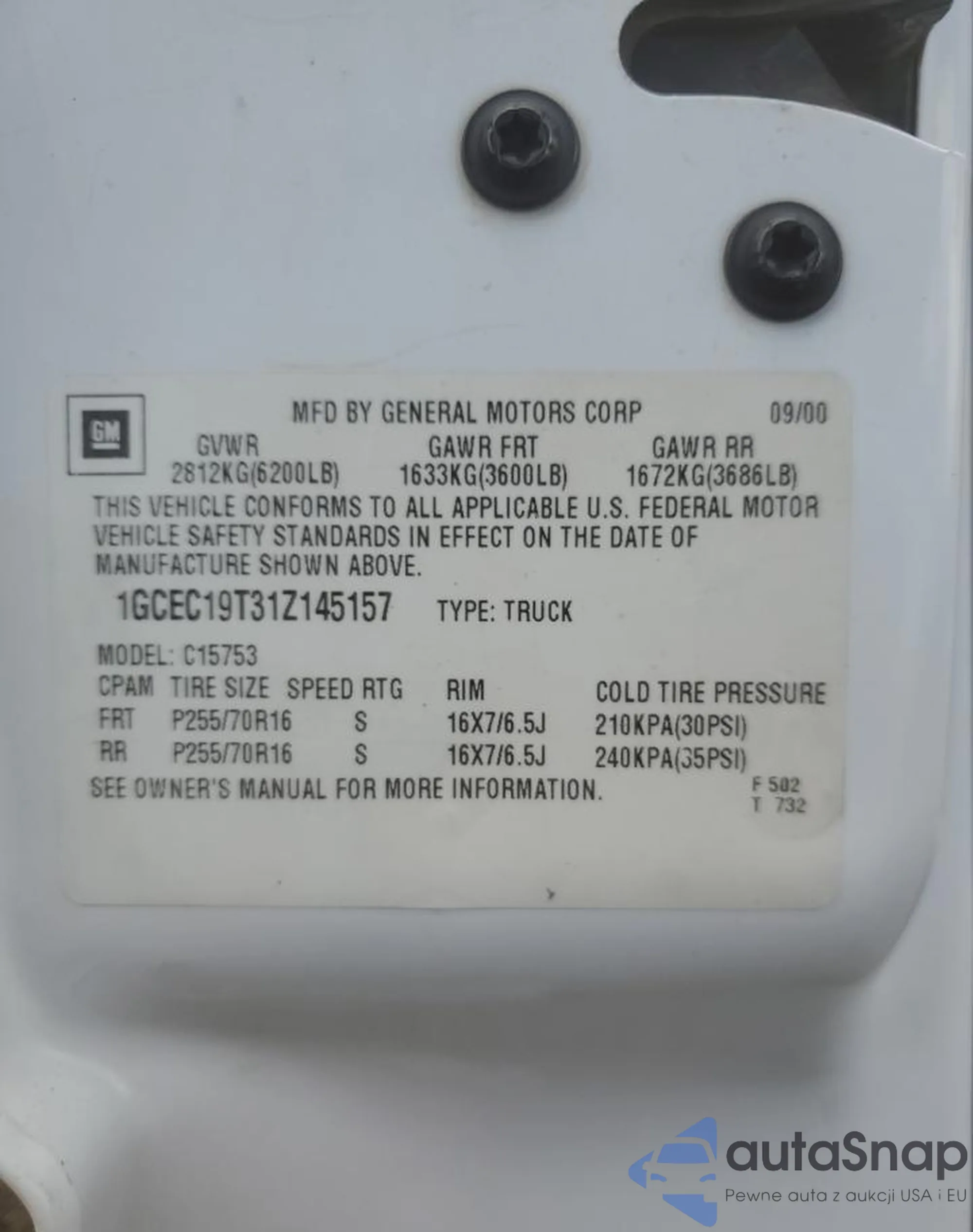 • VIN: 1GCEC19T31Z145157