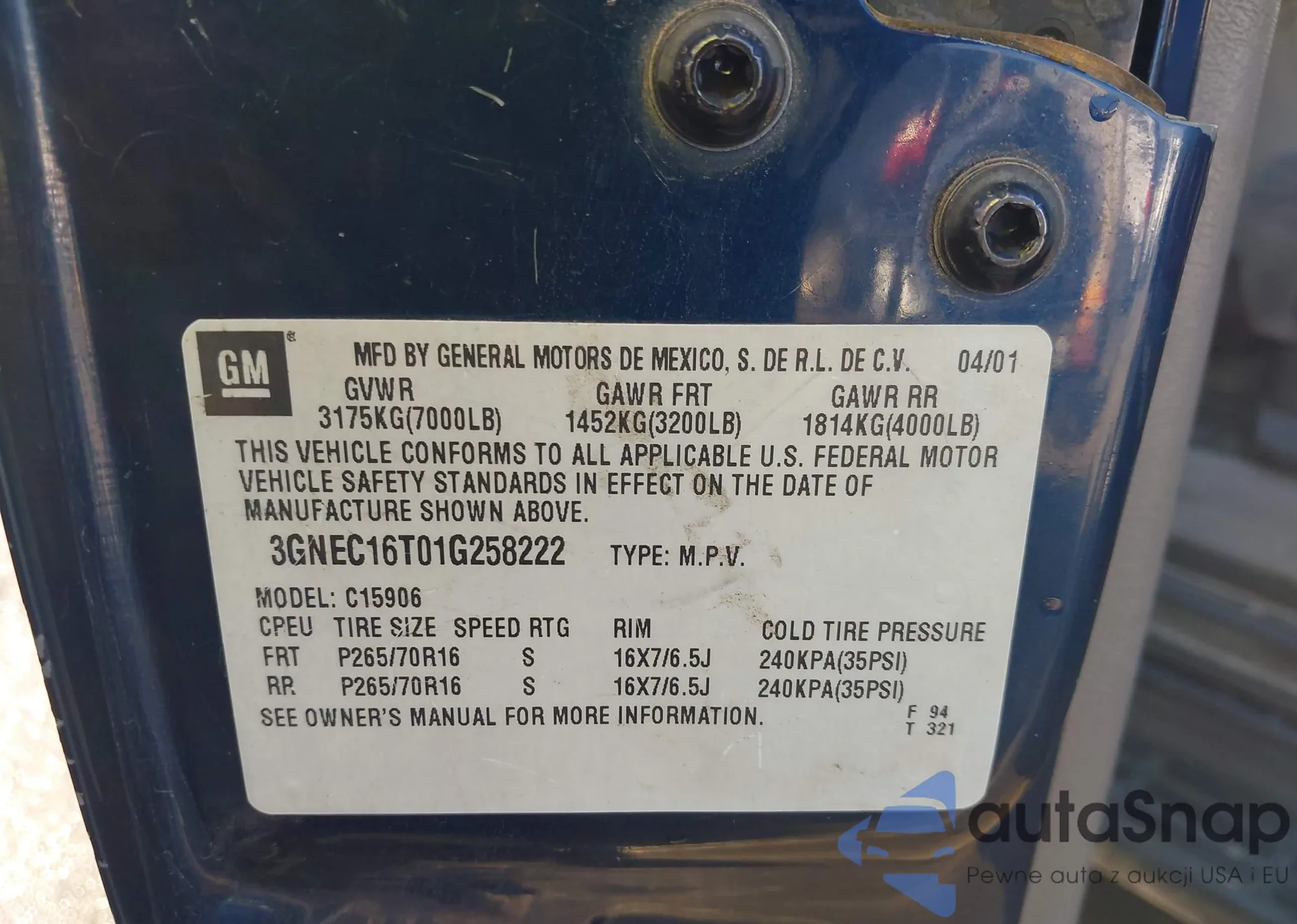 VIN: 3GNEC16T01G258222