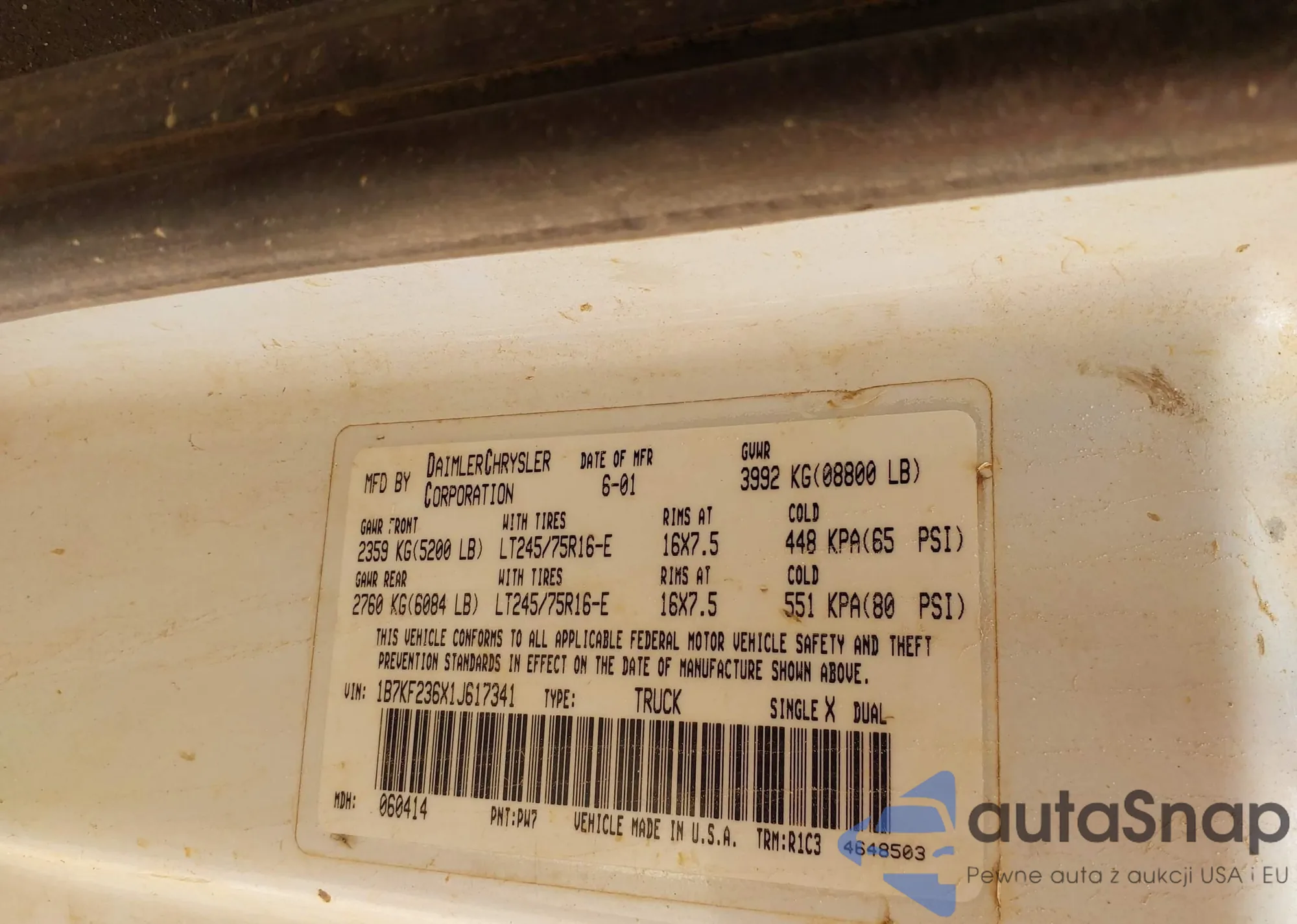 VIN: 1B7KF236X1J617341