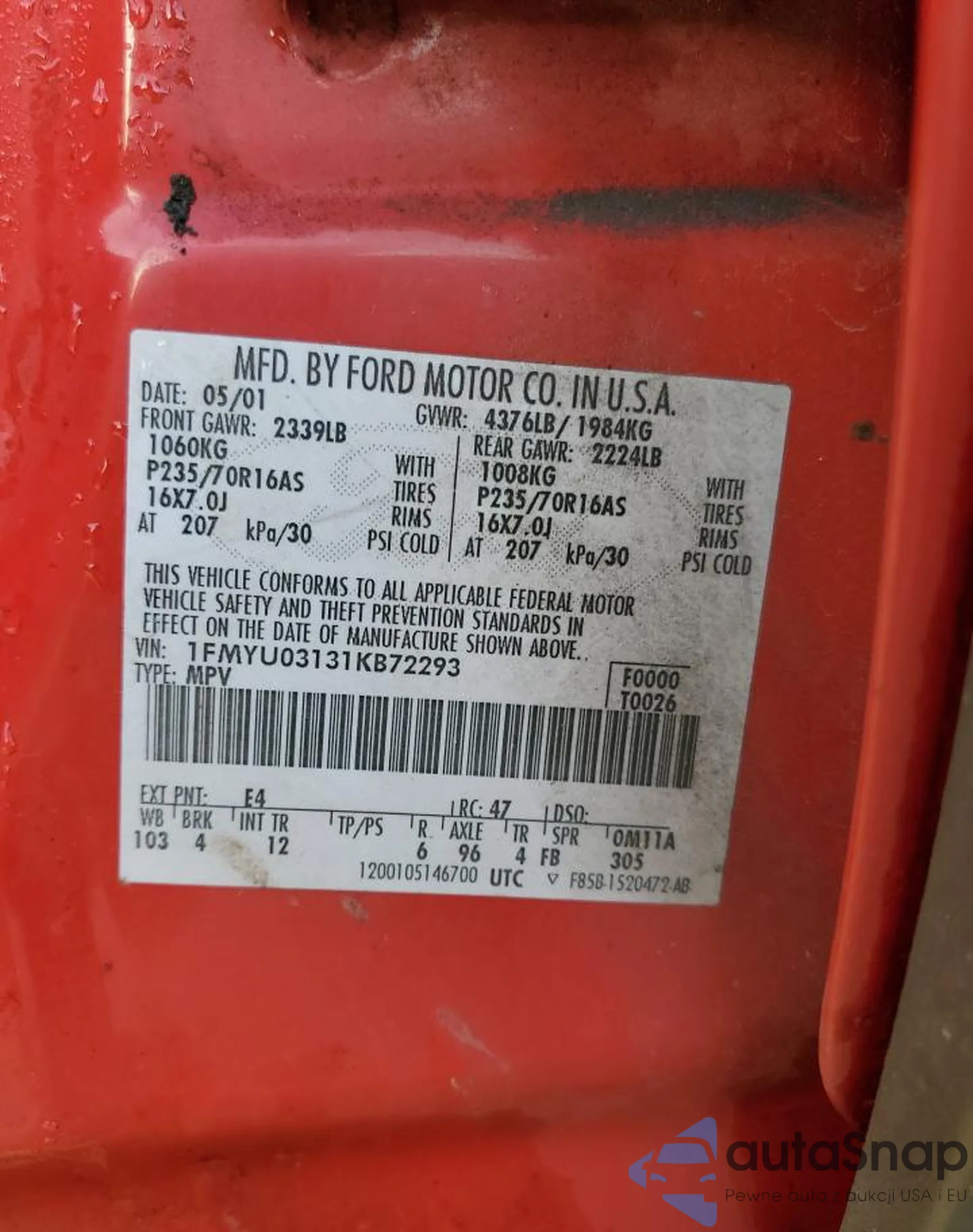 VIN: 1FMYU03131KB72293