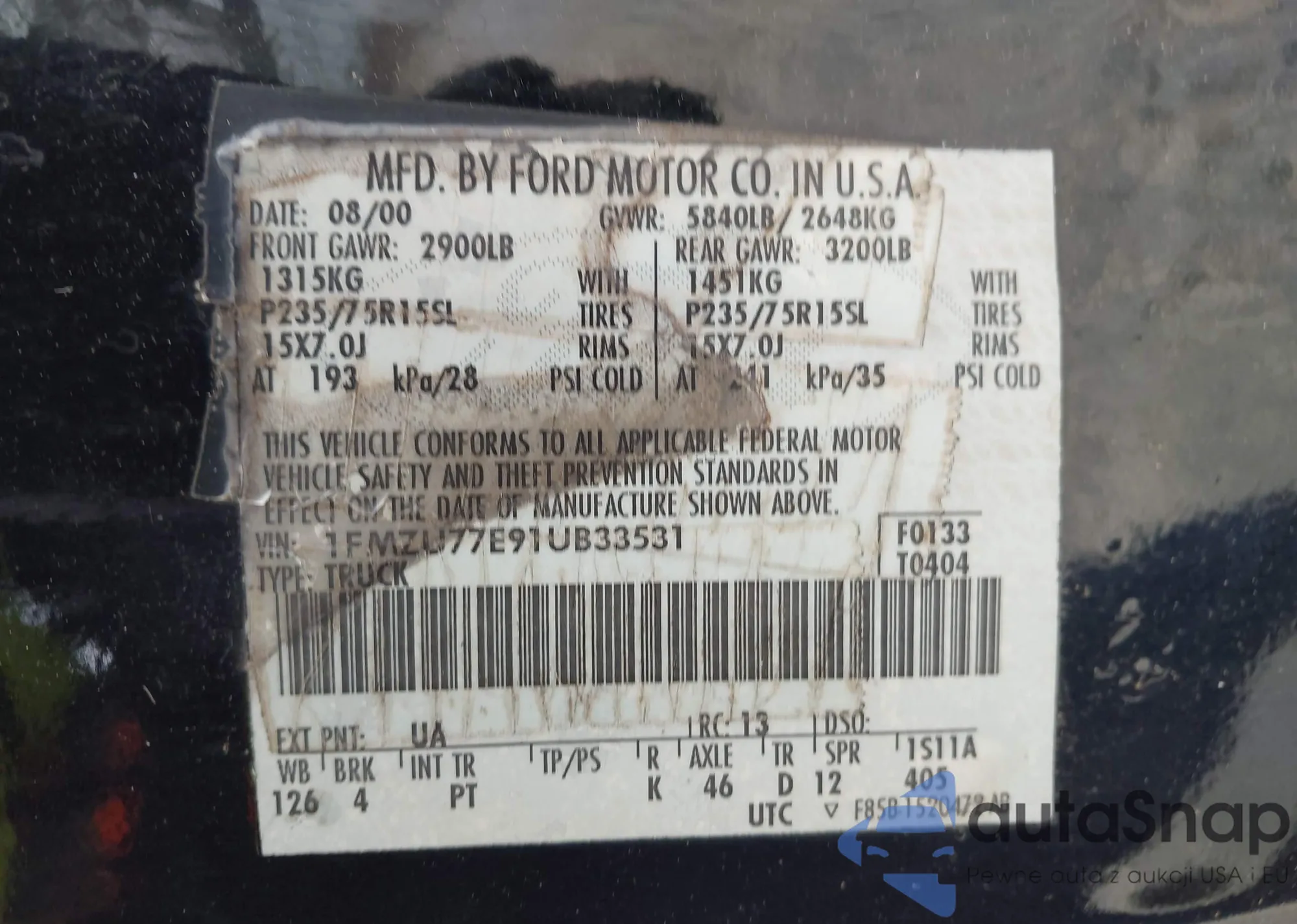 VIN: 1FMZU77E91UB33531