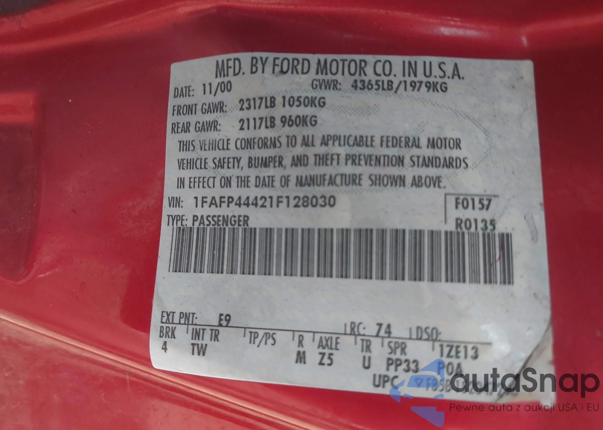 VIN: 1FAFP44421F128030